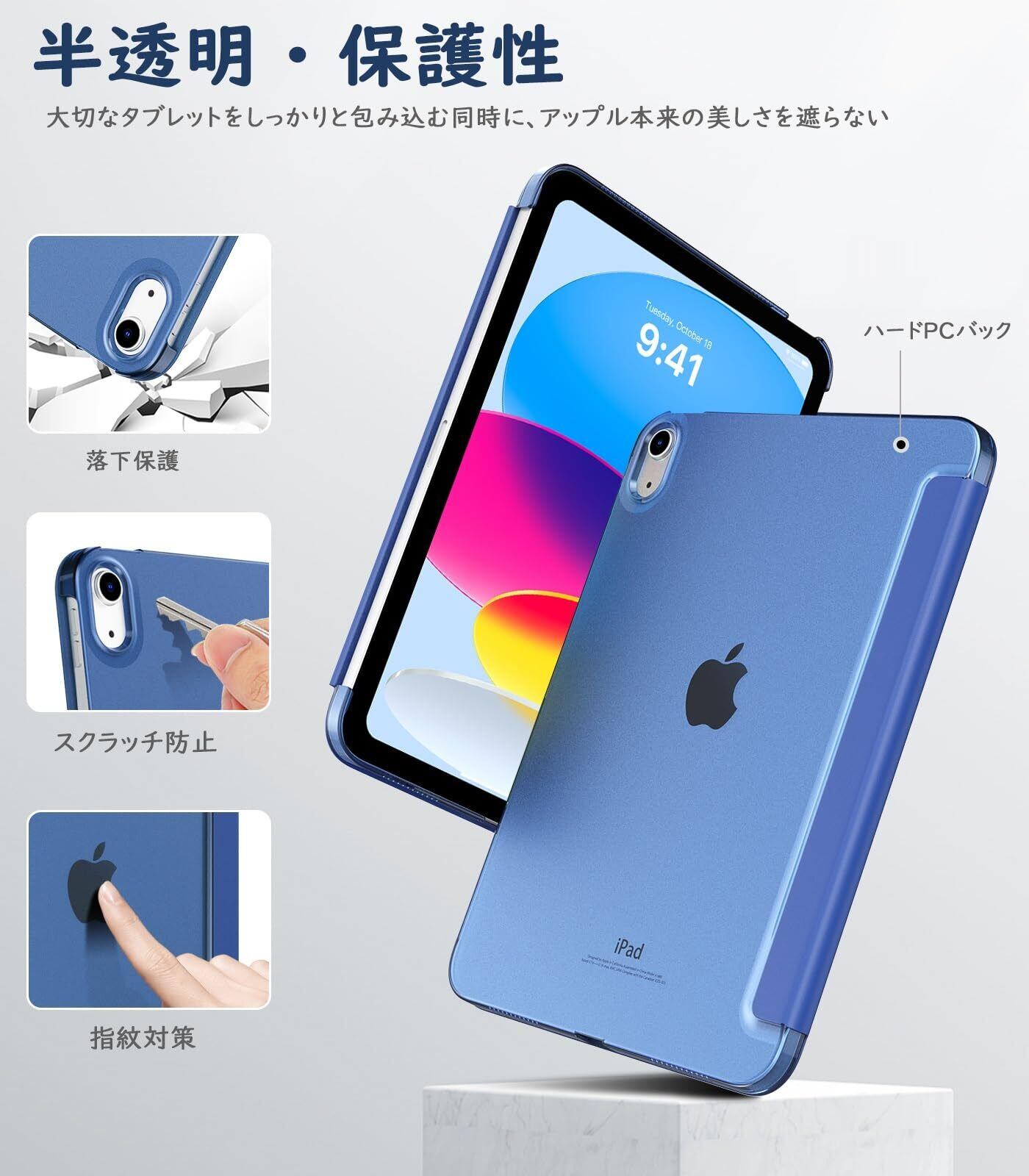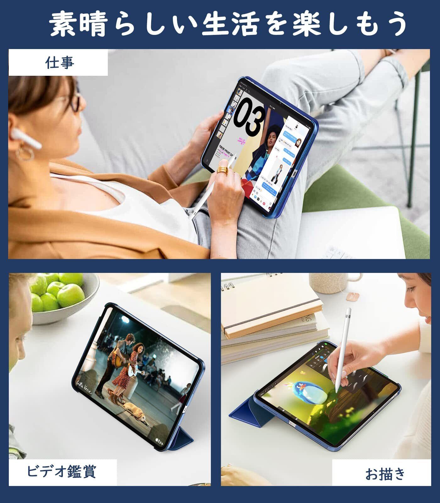 TiMOVO iPad (A16)11世代 ケース 11インチ 2025モデル/ iPad 第10世代 ケース 10.9インチ 2022モデル ハードカバー PUレーザー 開閉式 三つ折り スタンド マグネット オートスリープ機能 耐衝撃 軽量 落下防止 精密設計 着脱簡単 半透明 Navy Blue