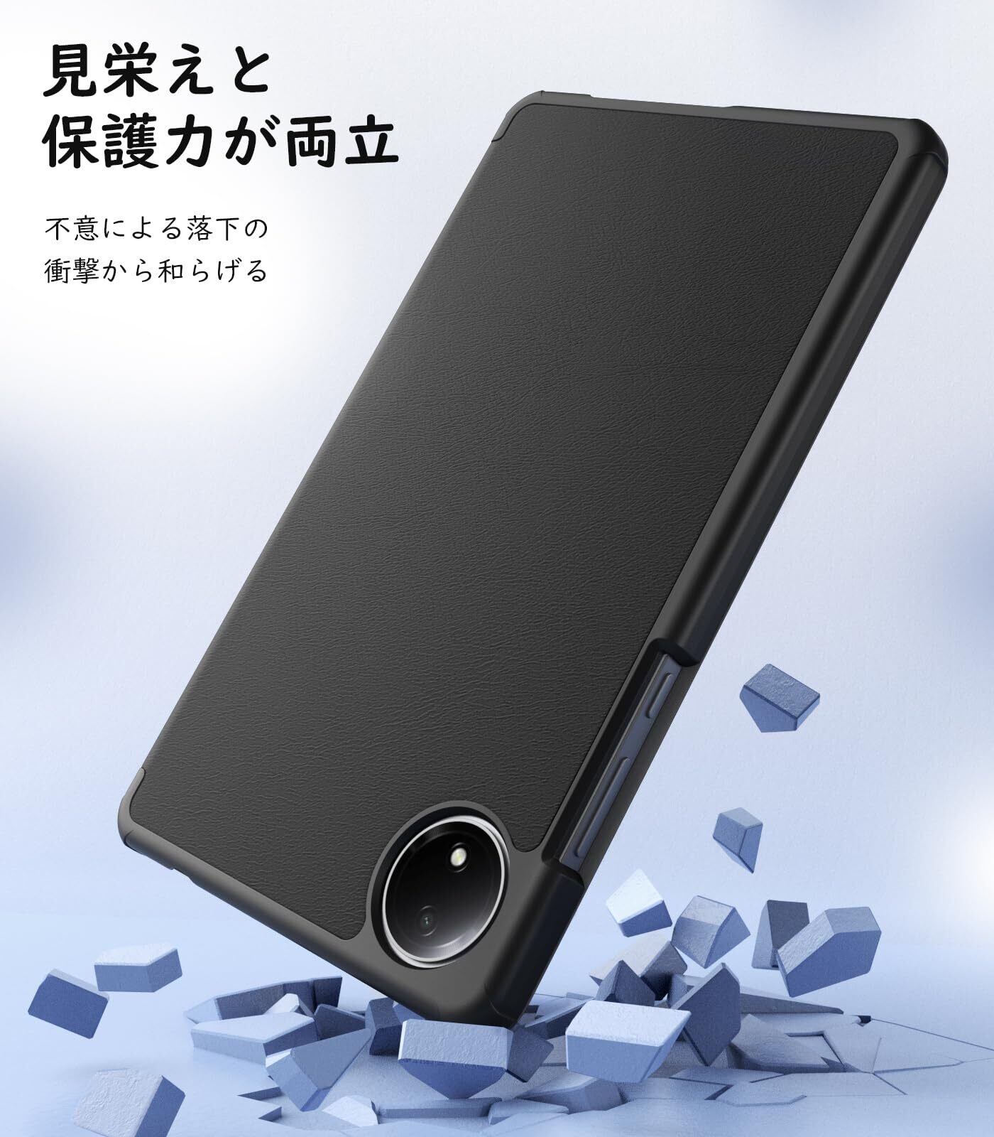 MoKo Redmi Pad SE 8.7インチ ケース Redmi Pad SE 8.7インチ小型タブ用保護ケース シャオミレッドミパッドSE 8.7インチ専用保護カバー スタンドケース オートスリープ対応 PC+PU製 手帳型 軽量 耐衝撃 Black