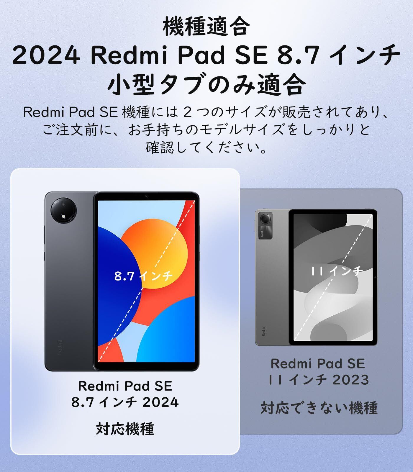 「対応機種」 2024年発売のRedmi Pad SE 8.7インチ小型タブレットに対応できる手帳式のケースです。薄型かつ軽量化にした設計で、取り扱いやすくピッタリフィットできる見栄えも保護力も両立させたスマートケースです。11インチに対応できないのでご購入になる前に、機種をしっかりと確認してください。