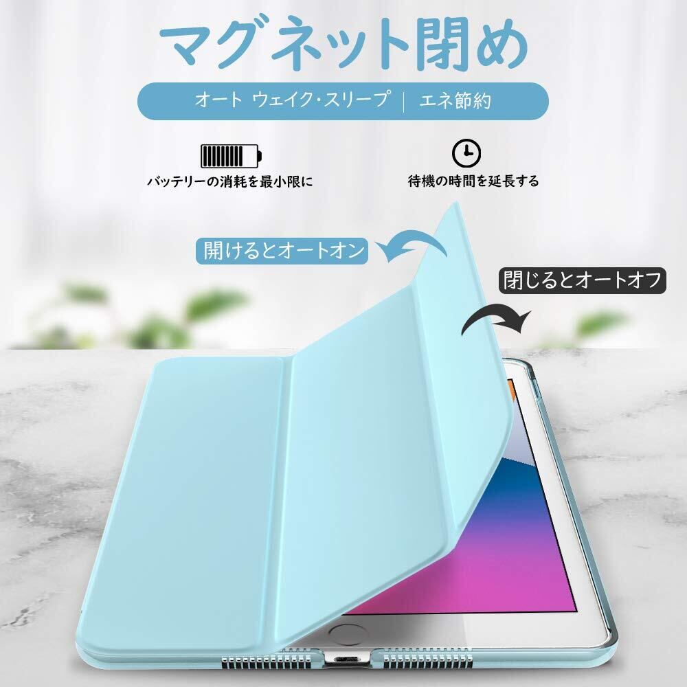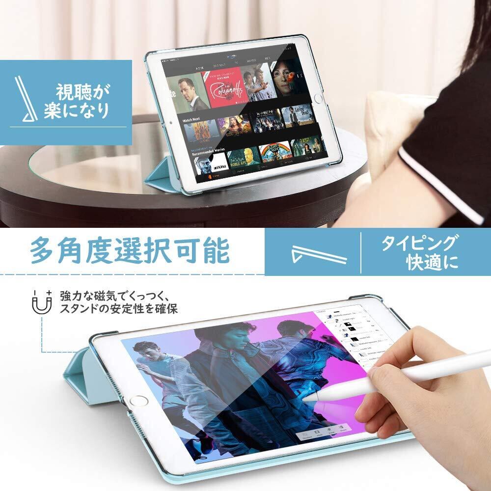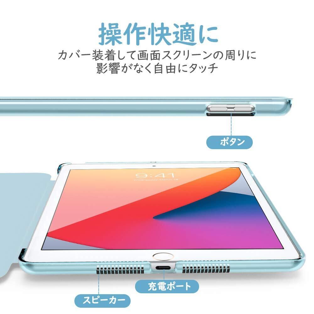 iPad 10.2 ケース Dadanism 第9/8/7世代 アップル iPad 10.2インチ 2021/2020/2019モデル 半透明 カバー スタンドケース オートスリープ機能 軽量 薄型 PU+PC マイクロファイバー裏地 耐久性 全面保護 スカイブルー
