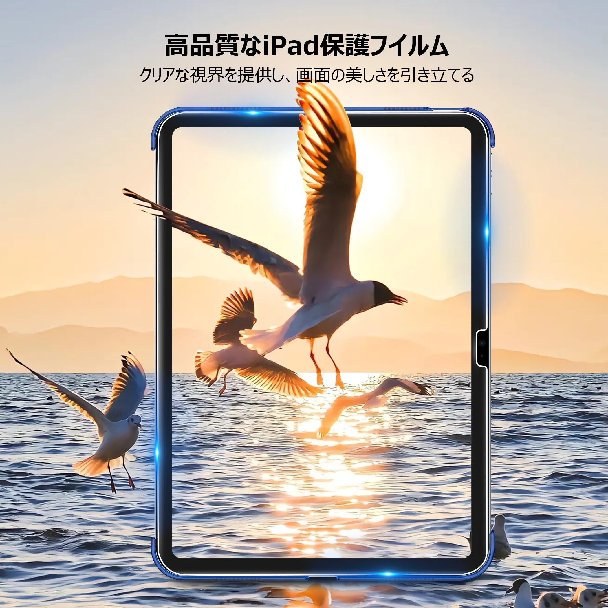 【セット:iPad ケース+ガラスフィルム】「届いてすぐに使えるのが嬉しい!」そんな声に応える、iPadユーザー待望の便利なセット。耐衝撃iPad a16 ケースと高透明度のガラスフィルム1枚が含まれています。ipad 11世代 ガラスフィルムは硬度9Hで、鍵やペン先による傷にも強く、日常使用でも安心です。さらに99%以上の光透過率を誇り、映画やゲーム、イラスト制作にも最適で、指紋も付きにくい防汚コーティング加工が施されています。
