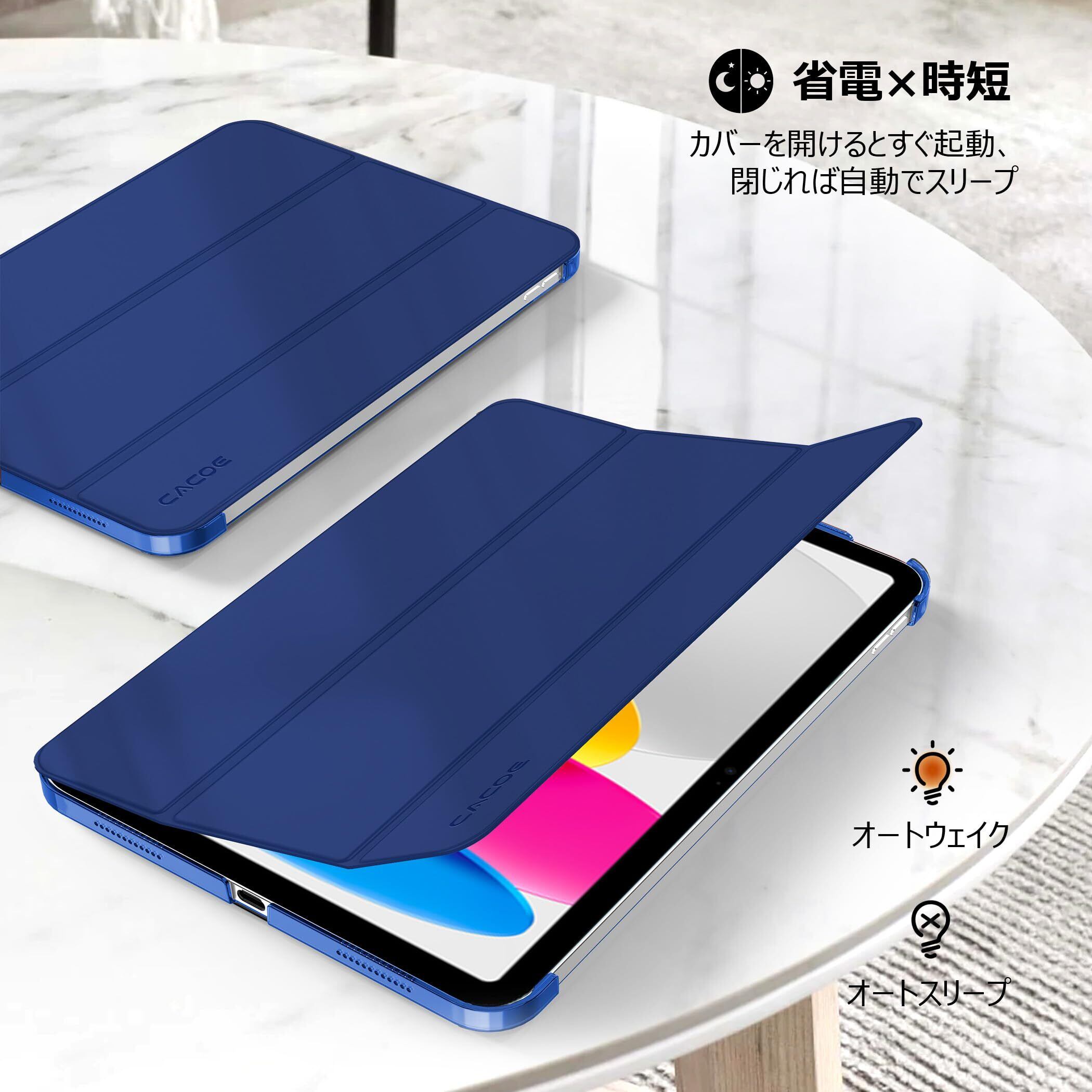 [iPad 11世代 10世代 ケース ガラスフィルム セット]CACOE ipad a16 11インチ 2025/10.9インチ 2022 アイパッド用 ハードケース オートスリープ 三つ折り Apple Pencil対応 あいばっど カバー ネイビー
