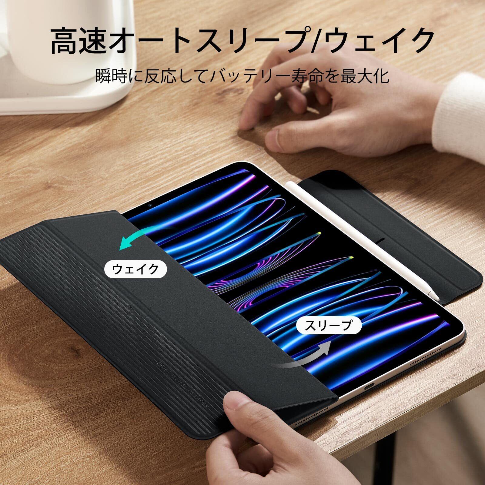 ESR iPad Pro 11インチ ケース 第4/3/2/1世代(2022/2021/2020/2018)専用 マグネット吸着式 Pencil 2対応 三つ折スタンド オートスリープ/ウェイク機能 Reboundシリーズ ブラック