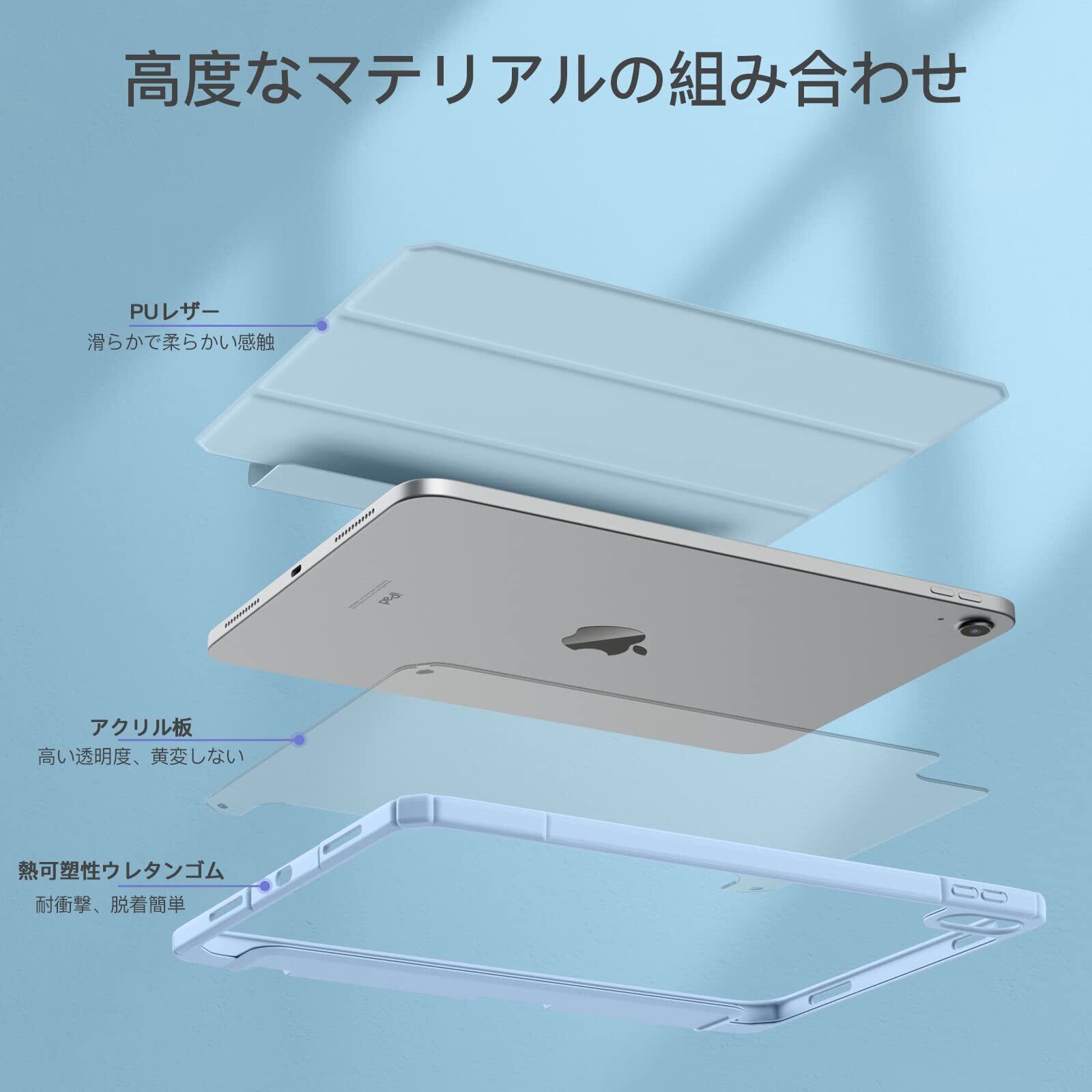 【クリアバックカバー】この対応iPad 11世代 ケースの背面板は高透明度のアクリル素材を使用しており、対応iPad本体のロゴやカラーを美しく表示できます。また、写真やステッカーなどを挟んで、自分だけのユニークな対応iPadを作成することができます。