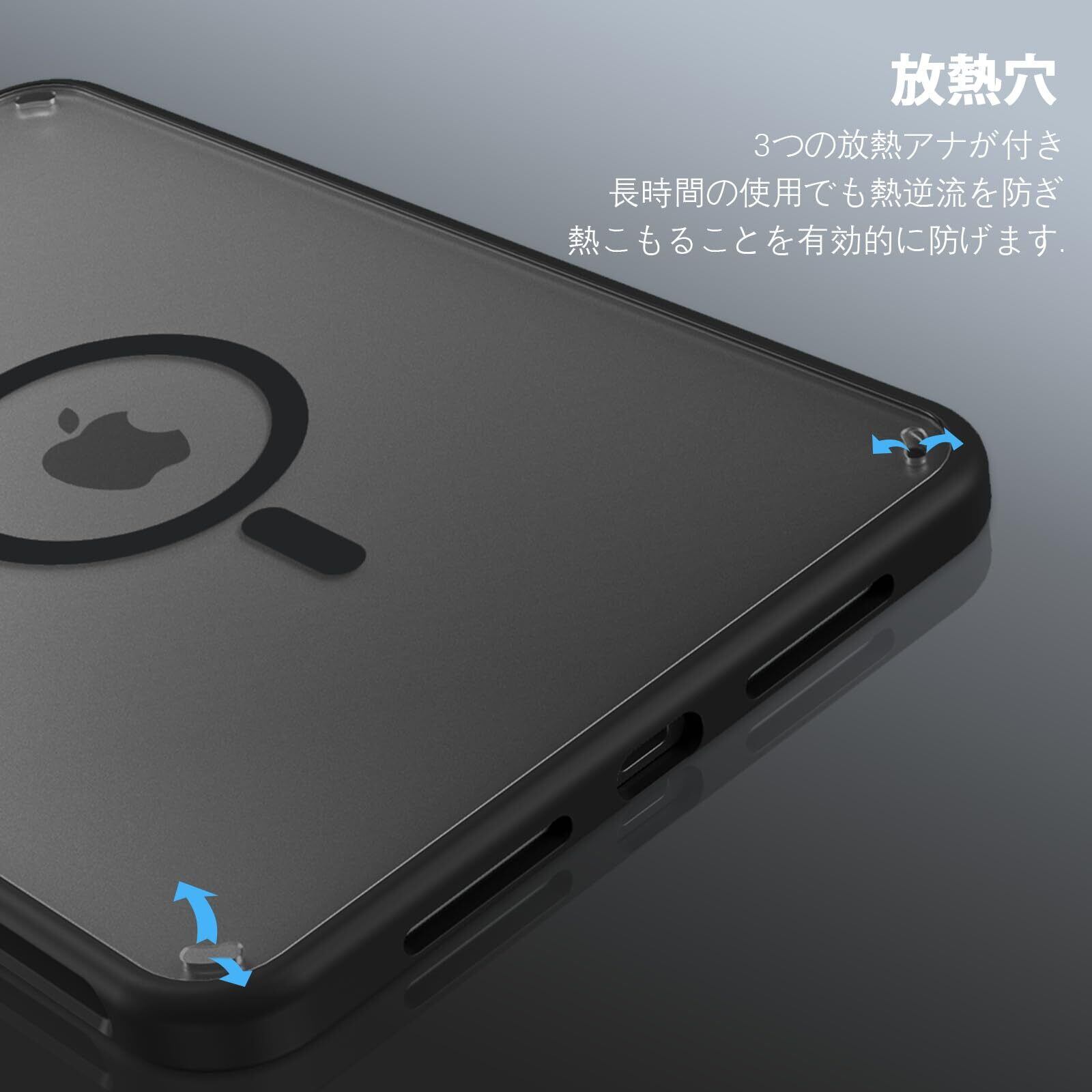 VENINGO iPad mini 7 ケース (A17 Pro 2024 第7世代) iPad mini6 ケース (2021 第6世代) 耐衝撃 半透明 黄変防止 指紋防止 MagSafe対応 マグネット搭載 薄型 マット仕上げ 一体感 着脱簡単 ソフトフレーム PC ハードカバー ブラック