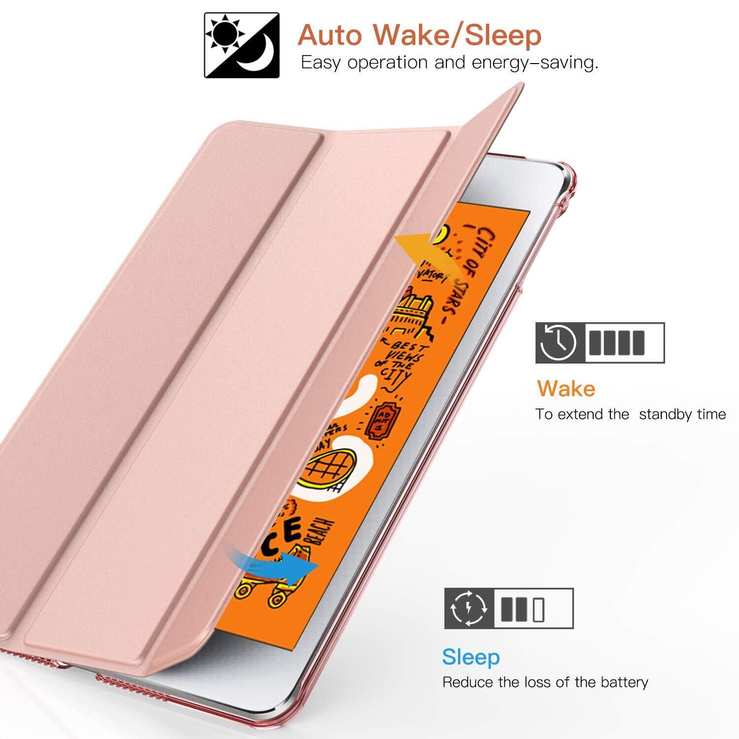 iPad mini5 ケース TiMOVO ipad mini 第5世代 ケース iPad Mini4 ケース 第5世代/第4世代 ipad mini 5 カバー 7.9インチ 適用 半透明 PC製 PUレーザー 三つ折り スタンド マグネット オートスリープ機能 耐衝撃 軽量 RoseGold