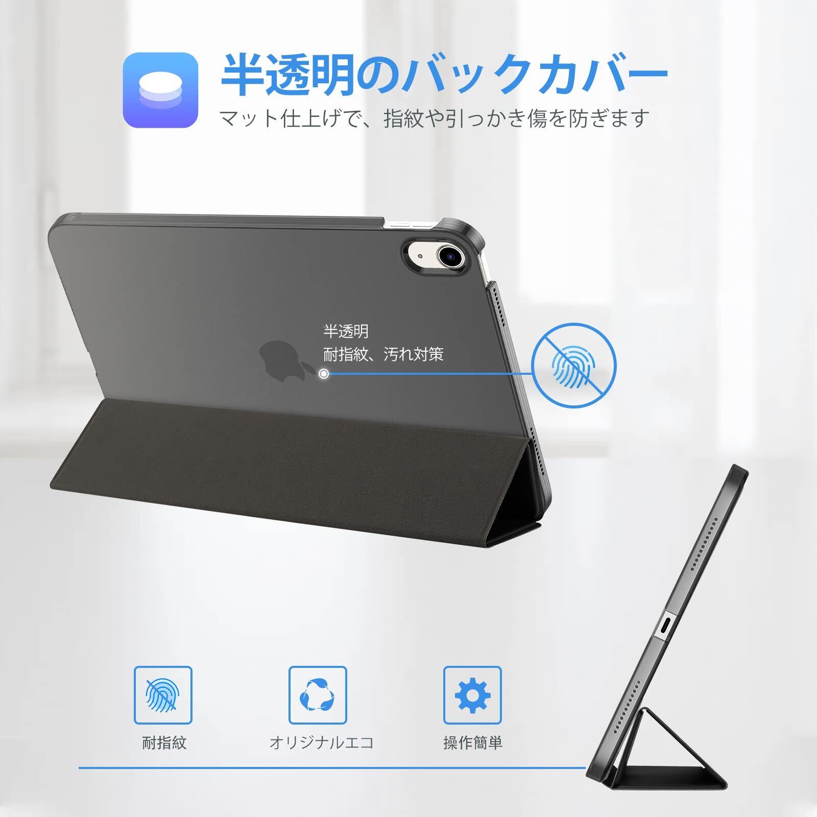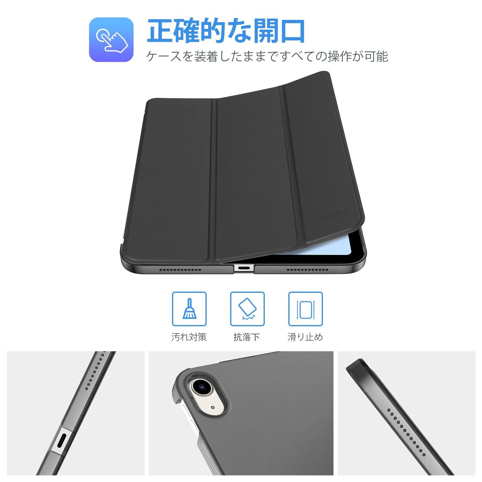 ProCase iPad 11世代/10世代 ケース iPad(A16)11インチ 2025/10.9インチ 2022通用 軽量 耐衝撃 三つ折り スタンド スマートカバー(シャドウブラック)
