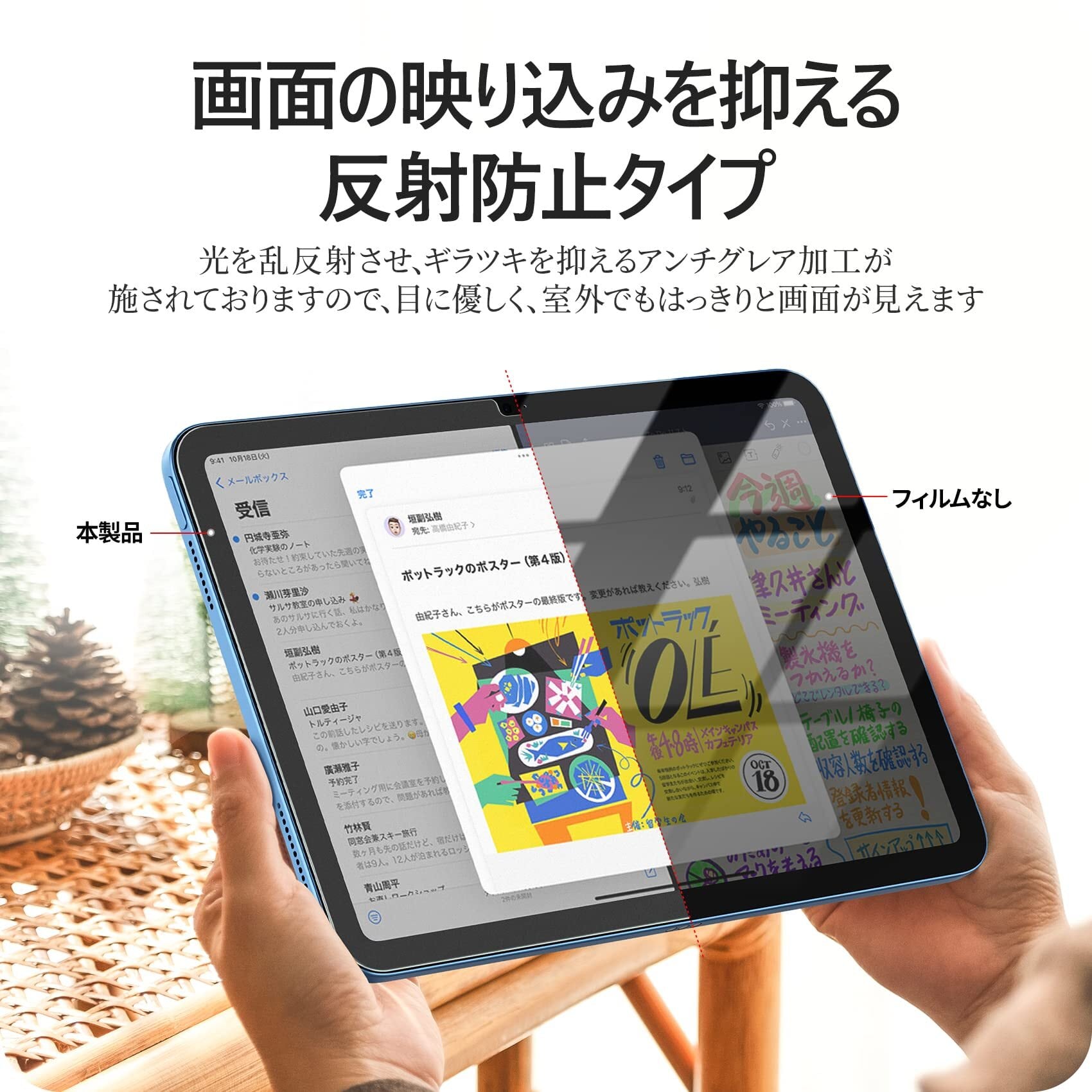 アンチグレア:本製品はアンチグレア加工が施されており、蛍光灯や日光による反射を効果的に押さえ、室内外問わずどこにいても反射の不快感を解決致します。ご注意:貼り付け後の透明度が足りないのお客様のご意見を受け、製品をさらに改善し、現在の製品は透明度という問題を解決しました。 以前、本製品を購入したお客様、もし透明度が足りないという問題があればカスタマーサービスにご連絡の上、、無料再送することができます。 ご迷惑をおかけして申し訳ございません。