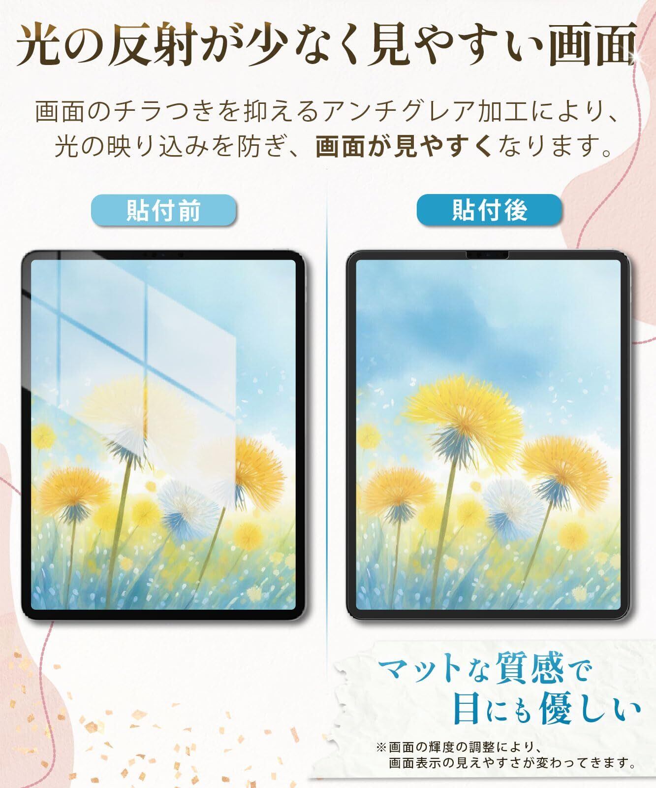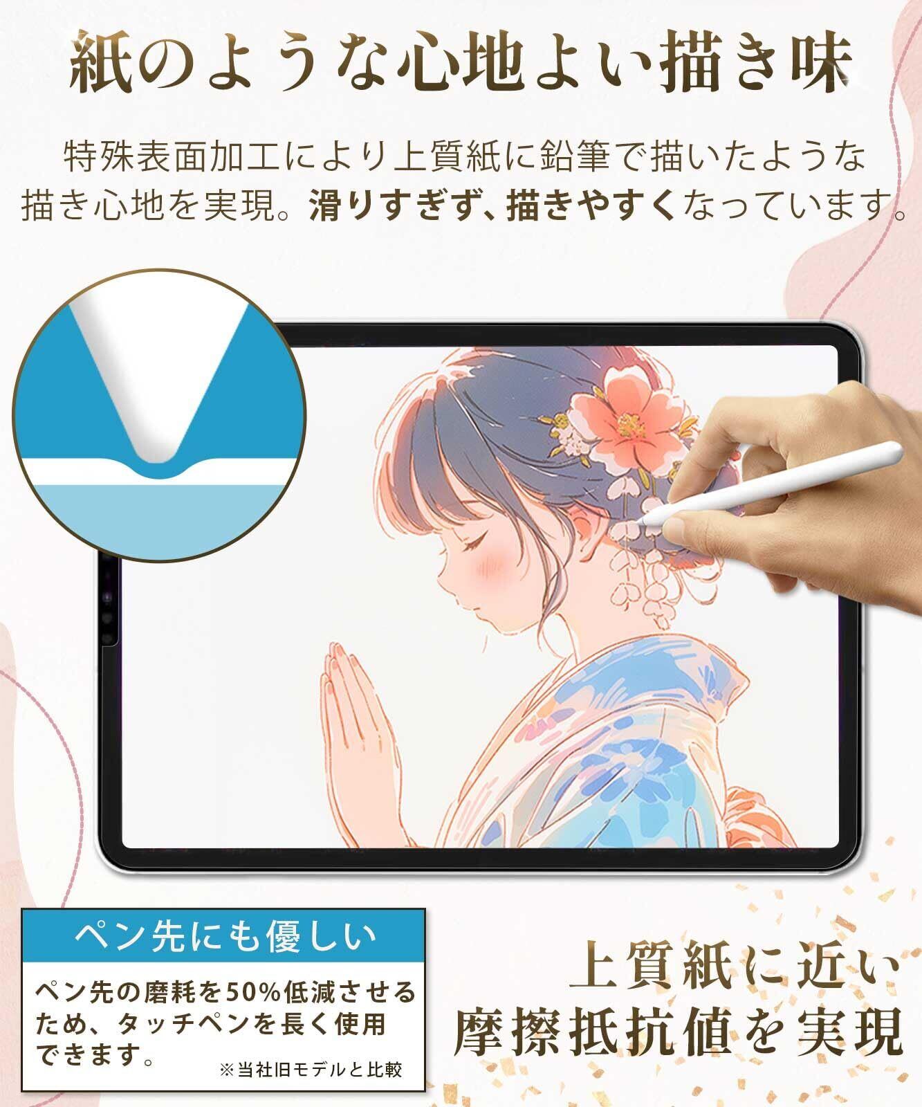 【紙のような描き心地】特殊表面加工により上質紙に鉛筆で描いたような描き心地を実現。 iPadで手書き作業をする人(ノート作成やイラスト)におすすめのペーパーライクフィルムです。️安い商品より圧倒的に書きやすい! さらさらした手触りで、書き味にこだわりたい方に最適です。また、表面を保護し、傷や汚れも防ぐ液晶保護フィルム(画面保護シート)です。