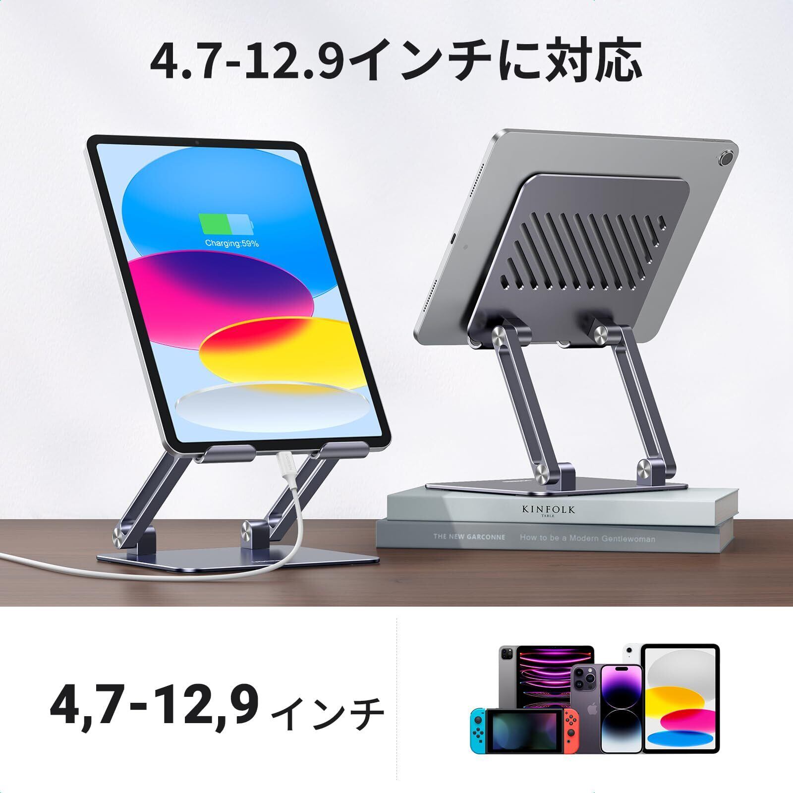 【収納便利&放熱性抜群】折りたたみ式のタブレット スタンドとして、省スペースに収納可能です,収納や持ち運びにも便利。自宅でも会社でも、どこでも便利に使えます。冷却しやすいアルミ合金スタンドに美しさと耐久性を兼ね備えた隙間を設けて、熱が籠りにくく、タブレットなどのデバイスの自然放熱を実現して、タブレットの運行スピードアップできます。