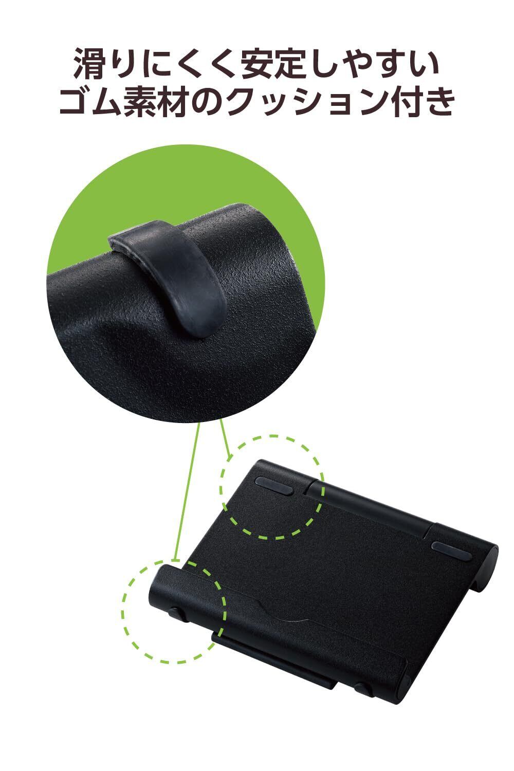スタンドとホルダーの底面、ホルダーの端末が接触する部分にゴム素材のクッションが付いています。滑りにくく安定して使用でき、テーブルなどの家具や端末への傷を防ぎます。