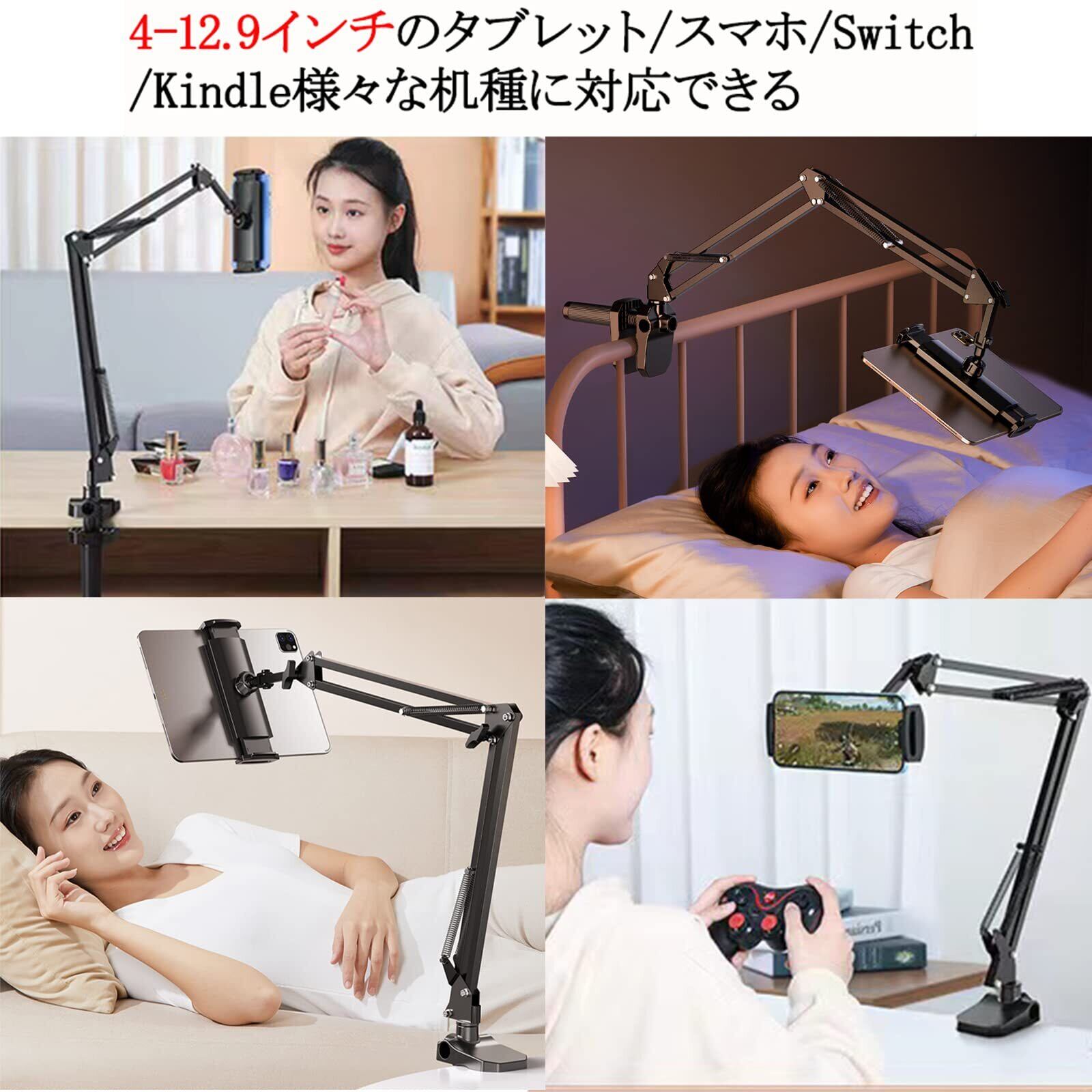 【五つの回れる関節、自由に調整できる・両手を解放し】アイパッド スタンドの可動域はとても自由自在!五つの可動軸と360°回転する金属ボールホルダーにより、高さや角度を細かく調節できて、思った位置に簡単に調節でき、最適な視聴角度と快適さを提供しております。動画視聴やWeb会議、オンライン授業など、さまざまなシーンで利用できる便利なタブレットアームです。お自宅にベッドに横になって快適に動画を見せる不可欠の一品です!