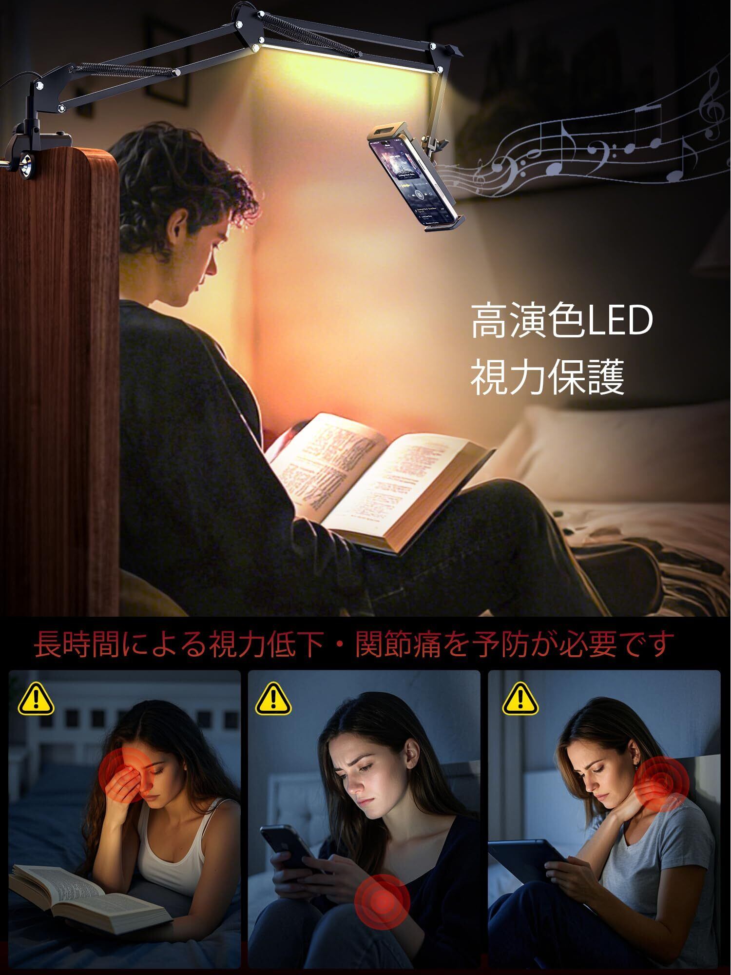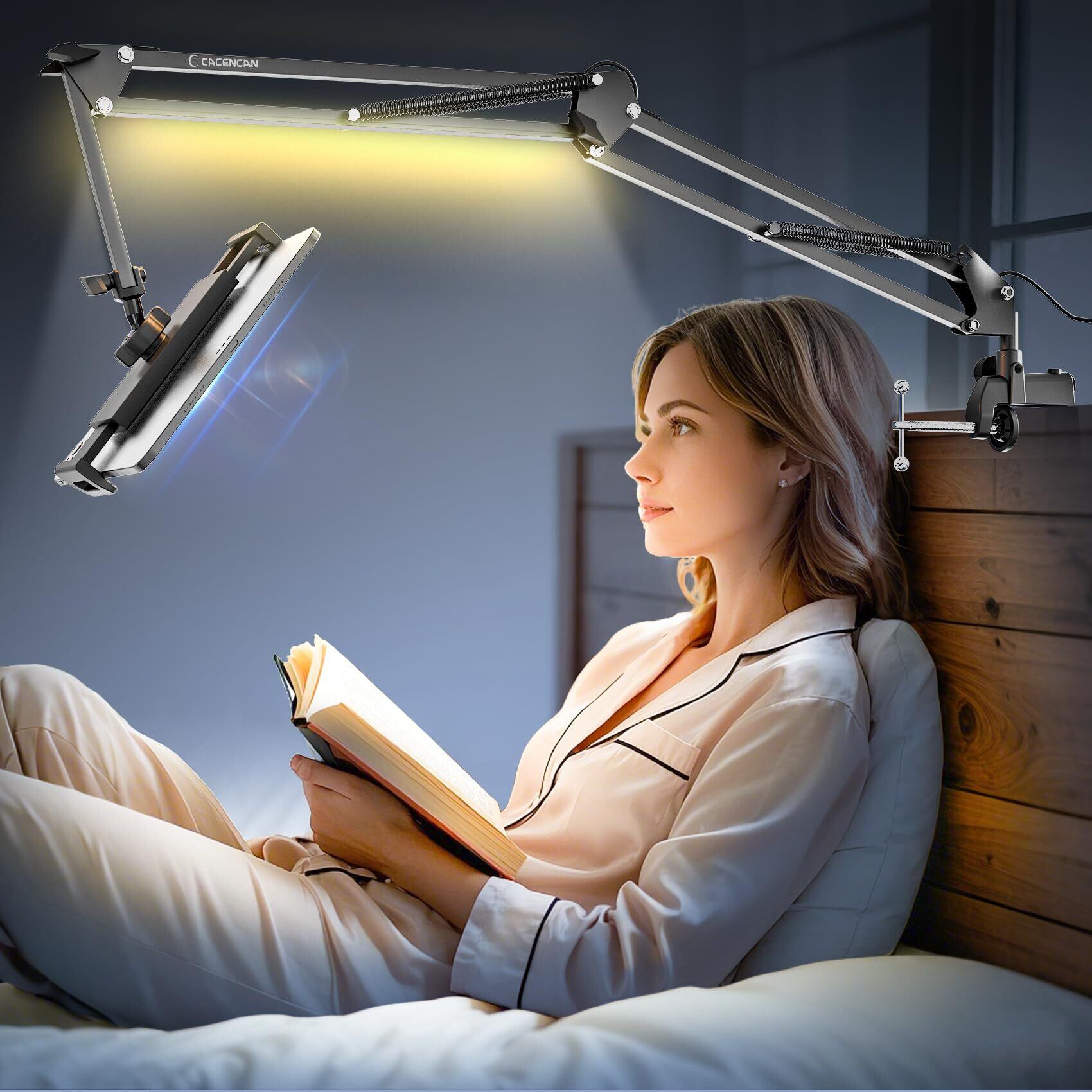 【多角度調整・1秒で片手調節・高品質LEDチップ内蔵】高さ・角度・距離をより自由に調節可能なライト付きタブレットアームです。 CACENCAN SL-01タブレットアームは前・後・左・右・上・下が自由に調節でき、ベッド・ソファ・デスク・キッチンなどシーンで最適な視聴角度と快適さを提供しております。 360°細かな角度調節ができるボールジョイントを採用し、動画視聴・オンライン授業・ウェブ会議などに最適な角度へ自由自在に調整可能です。 内蔵のledライト(暖色/冷色/白色)は適度な明るさで目を守りつつ雰囲気を演出します。 補助ライトとして、どんな使用シーンに合わせて3段階の調色(昼白色→電球色→昼光色)が自由に切り替えられます。 在宅ワーク、勉強や読書、ほっとひと息つく休憩、ペインティングなどの細かい作業にも安心!