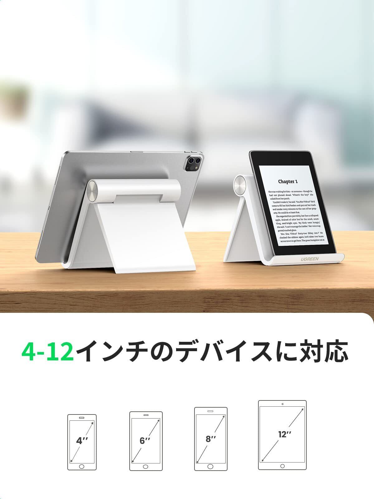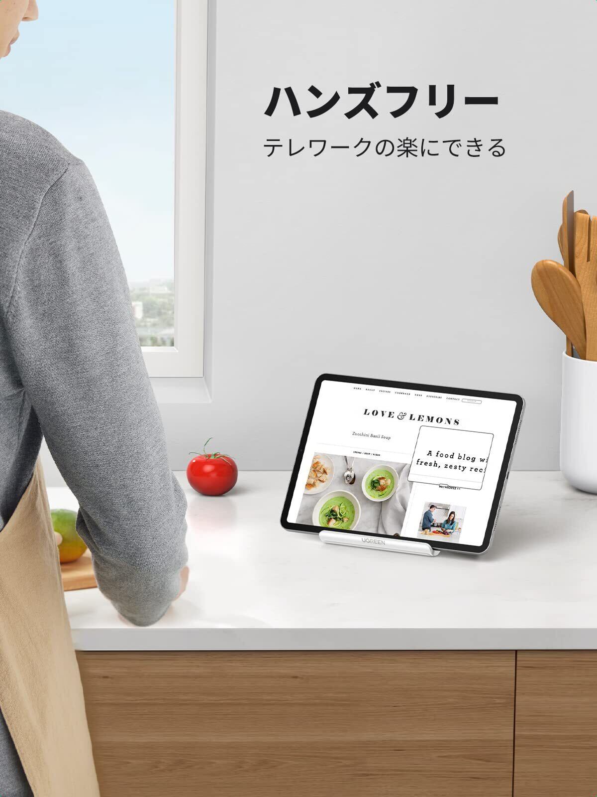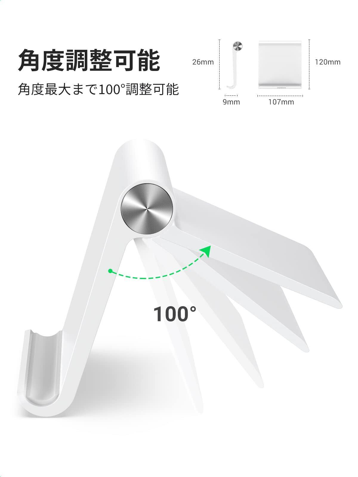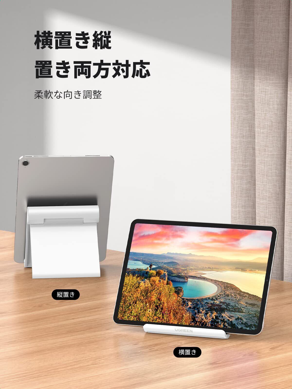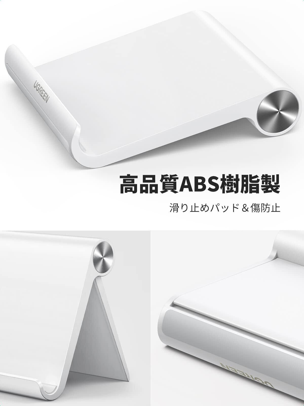 UGREEN タブレット スタンド iPad スタンド タブレット スマホ 兼用 角度調整可能 携帯ホルダー 安定性 ABS素材 滑り止めゴム iPad/Galaxy Tab、Note 6/5、LG、Sony、Nexus、Fire hdなどの4-12インチに対応(ホワイト)