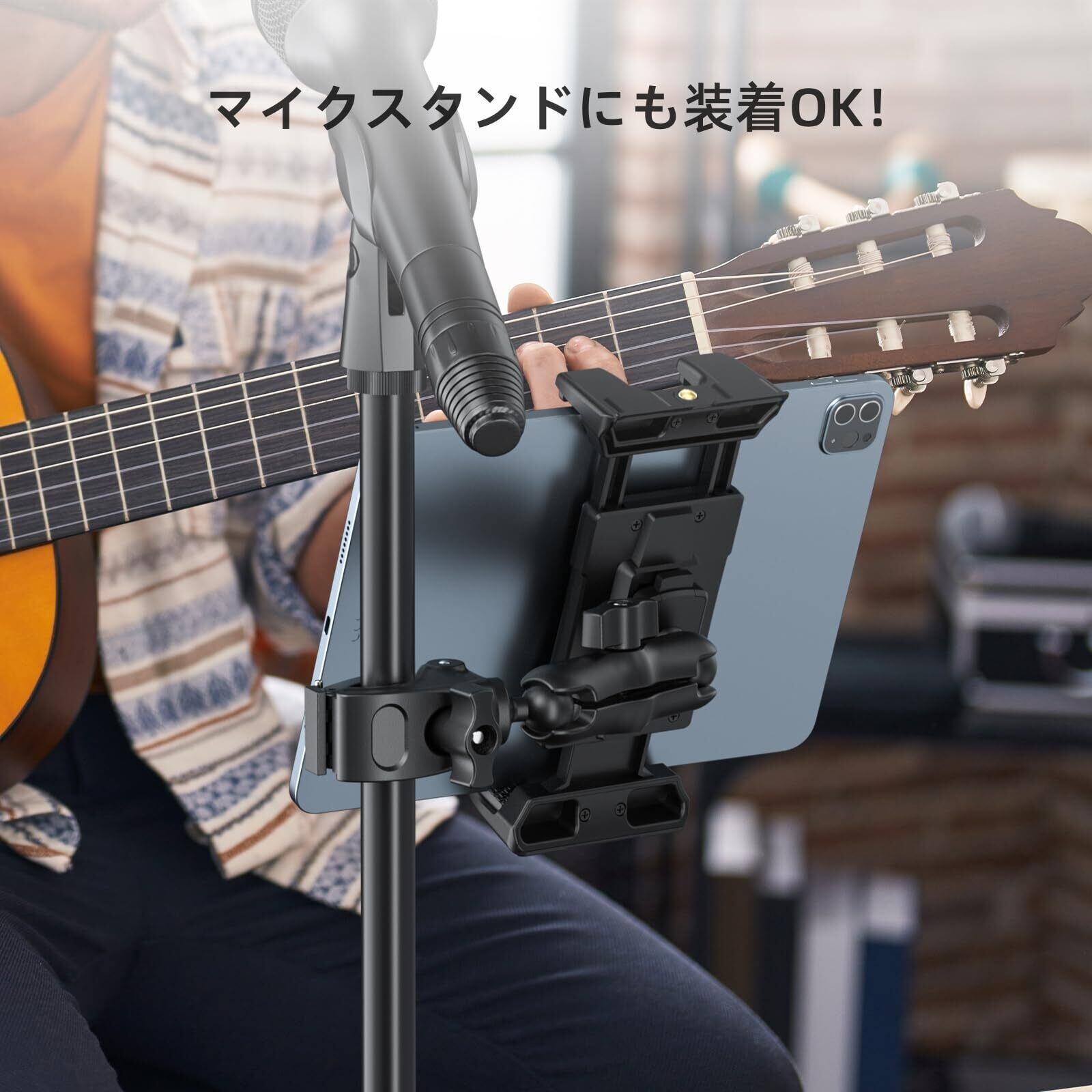OHLPRO タブレットホルダー スマホスタンド 自転車/バイク/マイクスタンド/トレッドミルなどに適用 ipadスタンド iPad Pro 12.9/Air/Mini、Galaxy Tab、iPhoneシリーズ、Fire HD 10など5~13インチのタブレット・スマホに対応 多角度調整可能 安定性 父の日ギフト