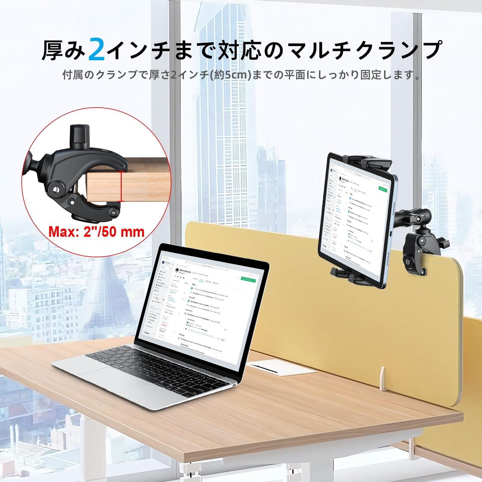 【簡単取り付け・高耐久性】このiPadホルダーはABS+ゴム素材を採用し、高いグリップ力と耐久性を兼ね備えています。工具不要で、ノブを回すだけで簡単に取り付け・取り外しが可能。必要な場所にいつでもどこでも設置でき、利便性と実用性を最大限に高めました。