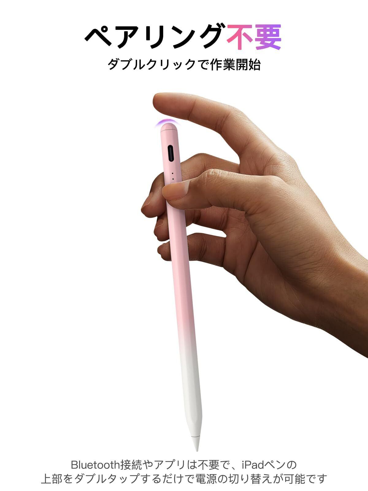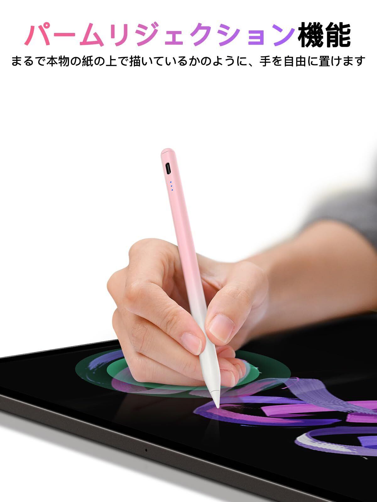 KEEPRO iPad ペンシル 2018〜2025年iPad対応 Apple Pencil代替 タッチペン スタイラスペン Type-C急速充電 超高感度 傾き感知 パームリジェクション 磁気吸着 誤作動防止 極細ペン先 替え芯3本付き【Bluetooth不要・電源オンですぐ使える!】グラデーション ピンク