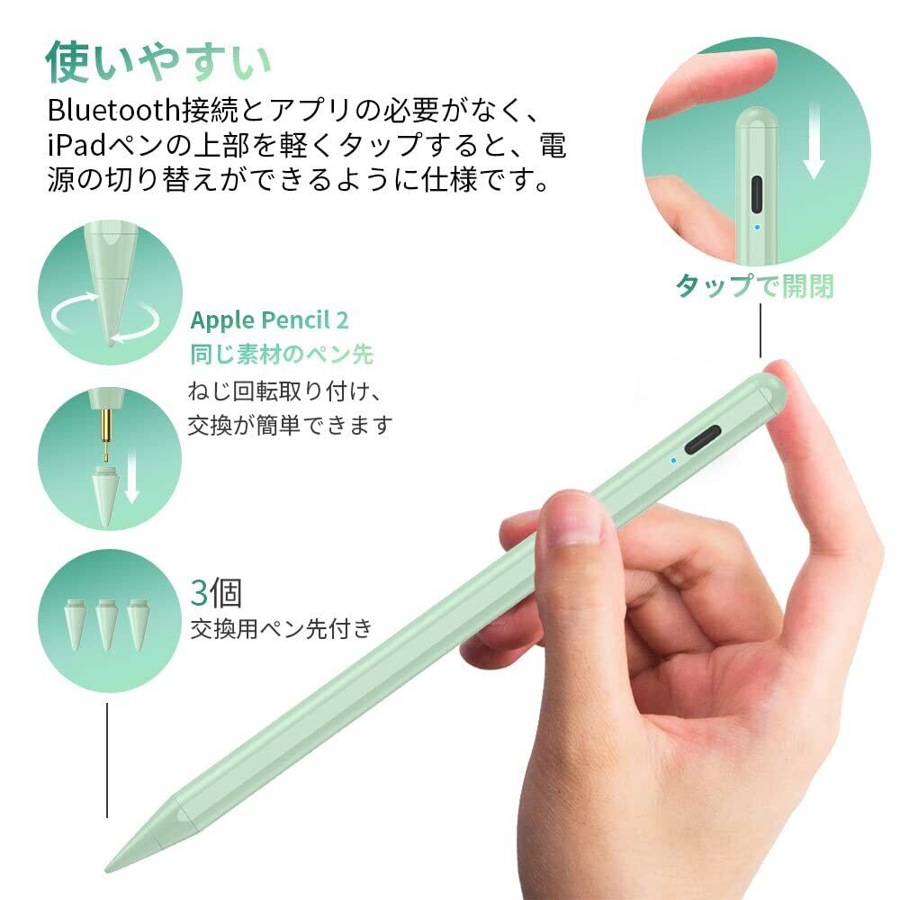 JAMJAKE タッチペンapple pencil替换用ペン急速充電 スタイラスペンiPad 用ペン 極細 高感度 傾き感知/磁気吸着/誤作動防止機能対応 軽量 耐摩2018-2025iPad対応 学生 子供 筆記 絵を描く デザイン用 ドローイング用