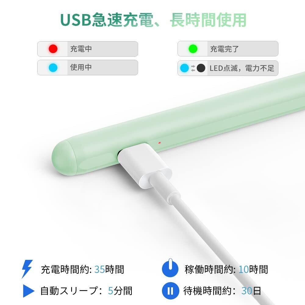 「USB-C充電式&長時間使用」JAMJAKEデジタルペンシルは、USB-C充電式タッチペンです。35分間フル充電で10時間継続使用可能となります。静止の状態で 、5分間放置すると自動スリープし、30分間 放置すると自動オフし、電源の切り忘れを 防止でき、バッテリーの節約に役立ちます。