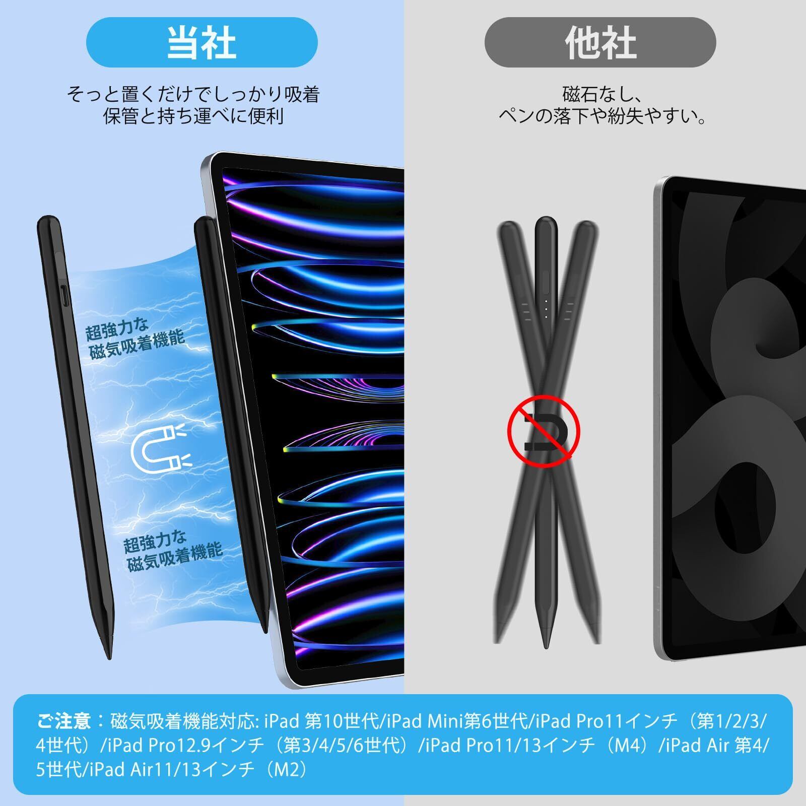 【使いやすい・2018年以降のiPad専用タッチペン】 ipad タッチペンのキャップボタンを押すとオンになり、簡単に書き込んだり描画したりできます。アップルペンシルは面倒なBluetoothペアリングも不要で、電子機器に不慣れな初心者でも創作の楽しさを体験できます。Mixooバッデリー残量表示アップルペンシルは2018年以降のiPadモデルに対応します:iPad 第6/7/8/9/10/11(A16)世代、iPad Mini第5/6/7世代、iPad Pro 11インチ第1/2/3/4世代、iPad Pro 12.9インチ 第3/4/5/6世代、iPad Pro 13/11 インチ(M4)、Pad Air 第3/4/5世代、iPad Air 13/11 インチ(M2/M3)。