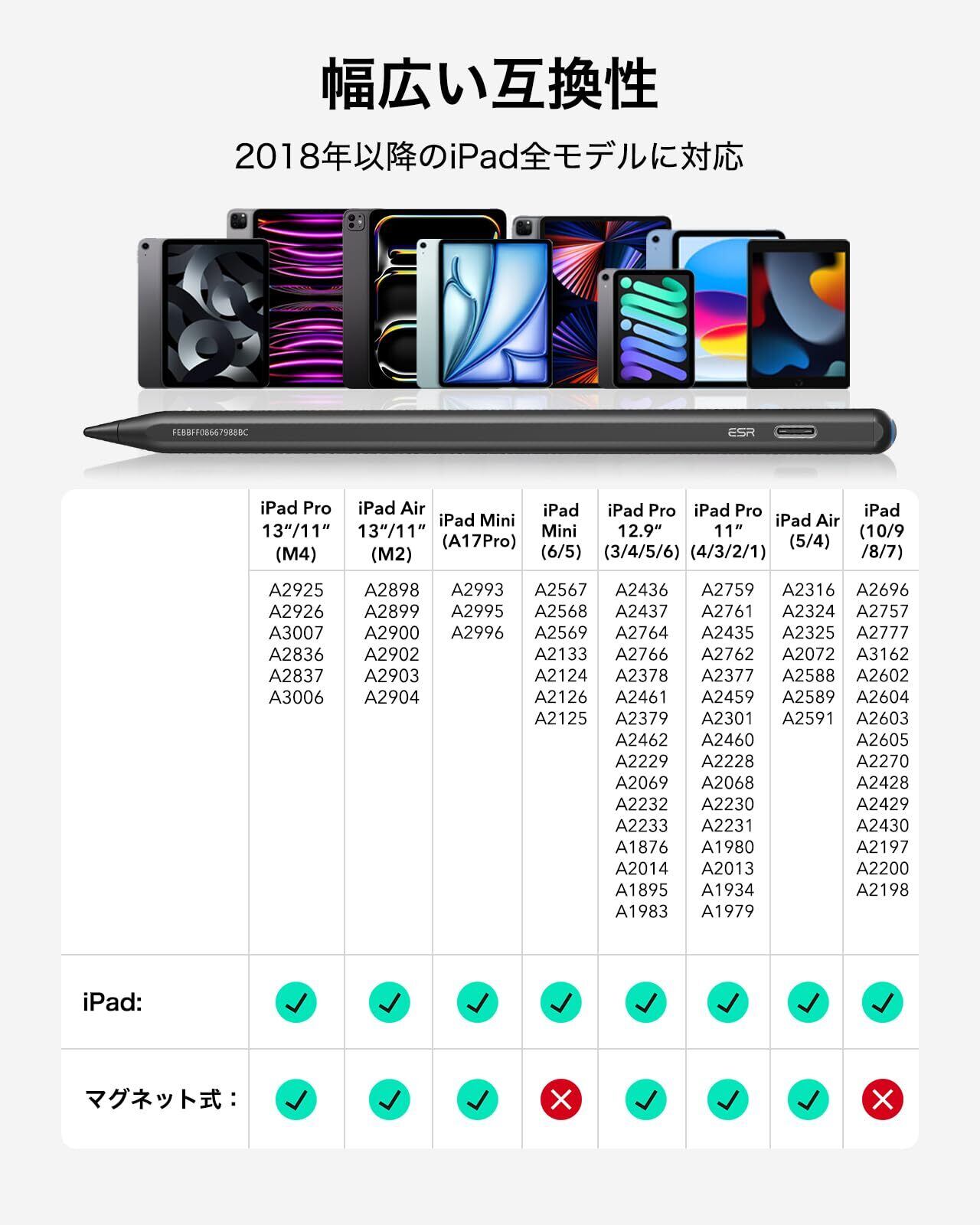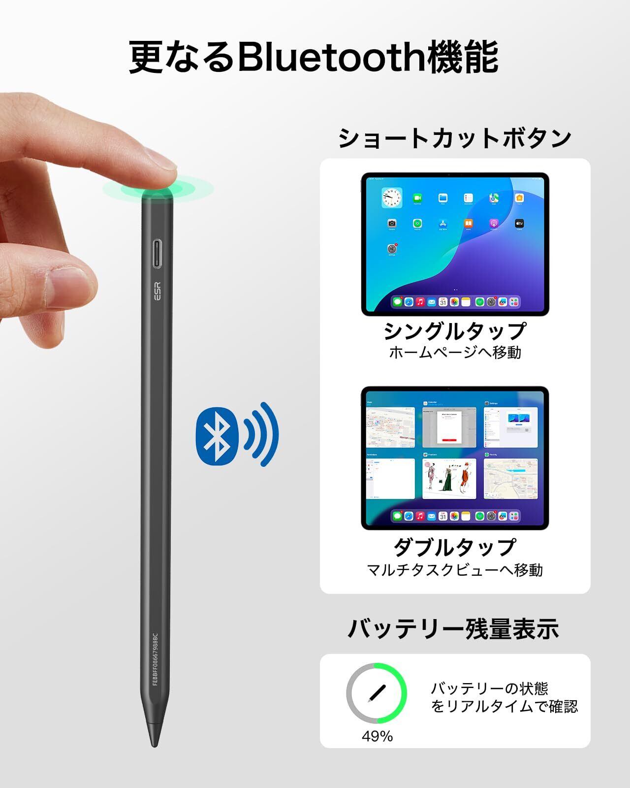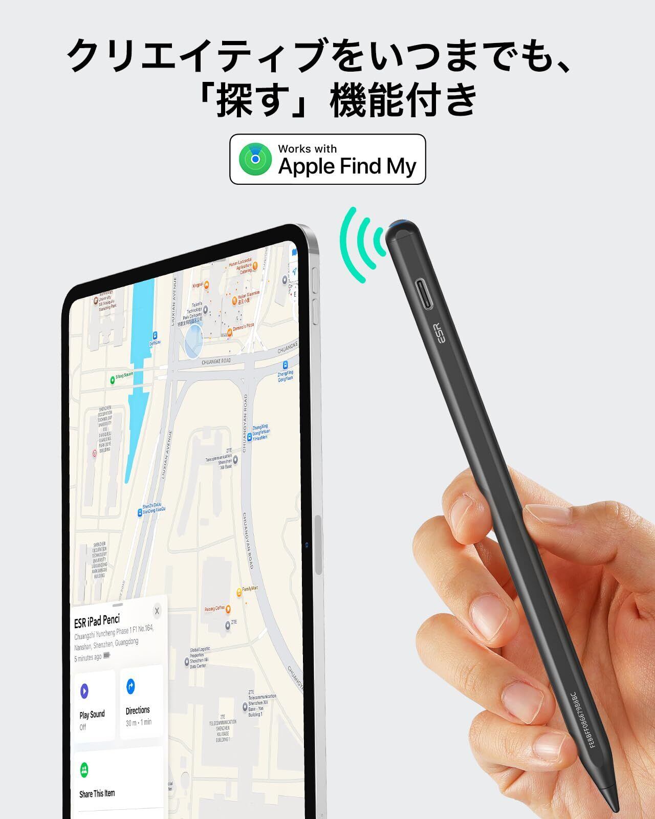 ESR ipad ペン 用 Find My「探す」機能付きスタイラス 2025-2018, iPad Pro 13/12.9/11-M4 iPad Air 5/4/13/11-M2, iPad 11/10/9/8/7 & iPad Mini 6/5用Find My「探す」機能と傾き感知機能付きipad ペンシル Pro, ブラック
