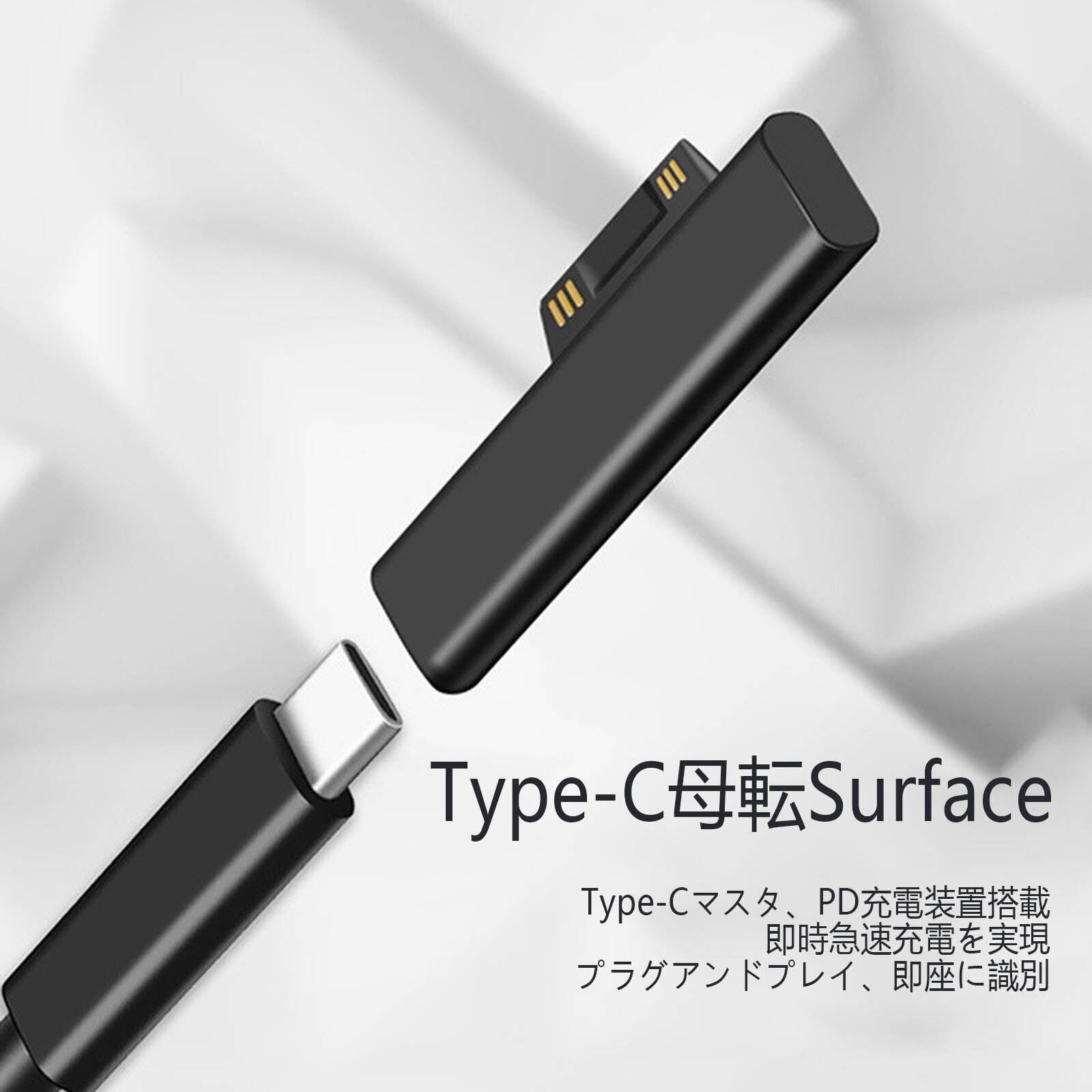 [LUYING] USB-C to Surface Pro 急速充電アダプタ 15V/3A 65W PD Type-Cケーブル マイクロソフト Surface Pro 7/6/5/4/3/X Surface Go1/2 Surface Laptop 1/2/3/4/5 Book タブレット対応 黒