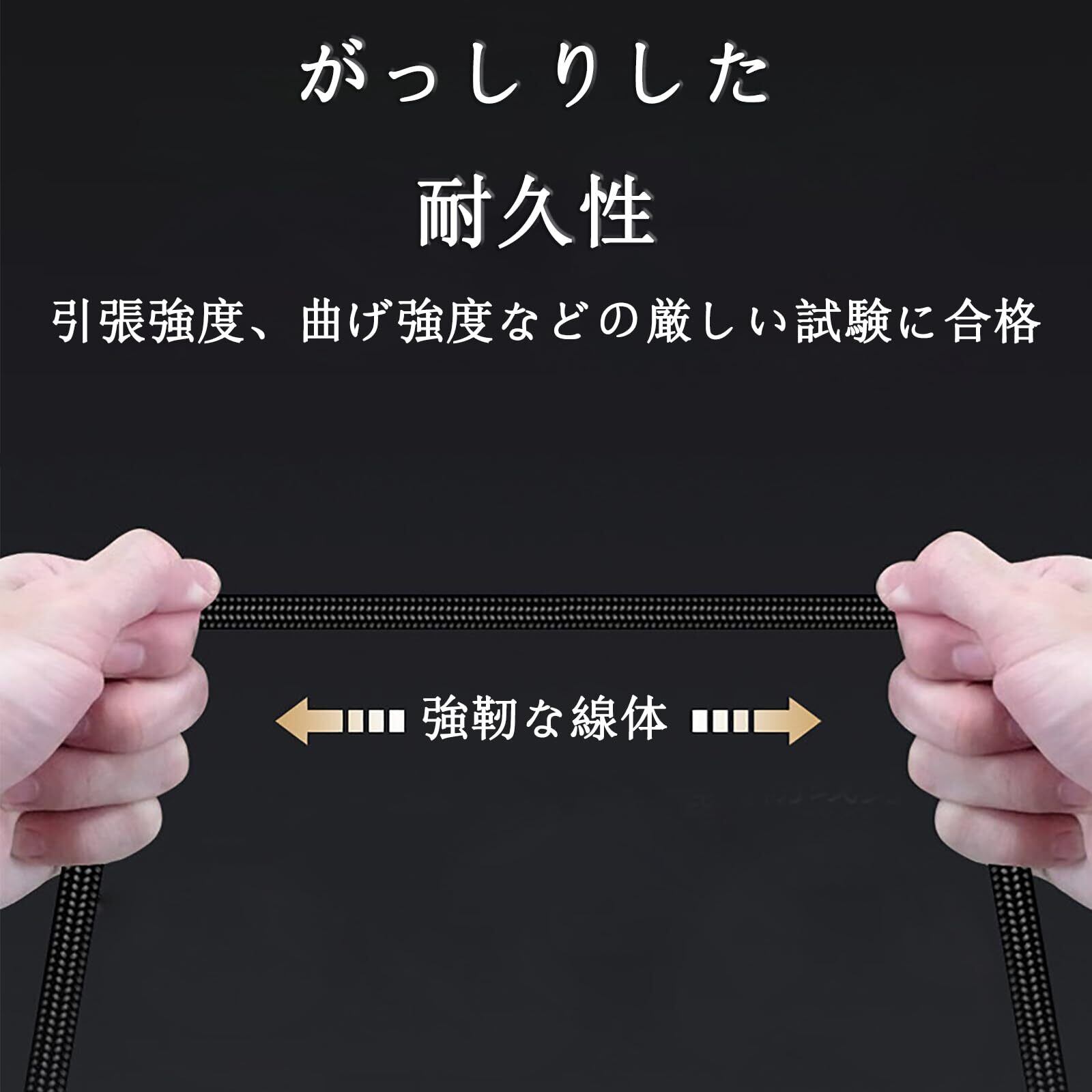 【耐久性に優れている】ケーブルは良質かつ純粋な無酸素銅芯を採用し、導電性が高いし、電波干渉が少なく、安定した充電が可能です。高品質のナイロン編組線で覆われ、曲げ防止、丈夫で耐久性があります、使用寿命も長いです。1万回以上折り曲げても問題なくご使用可能で、耐振動・耐衝撃性が良いです。