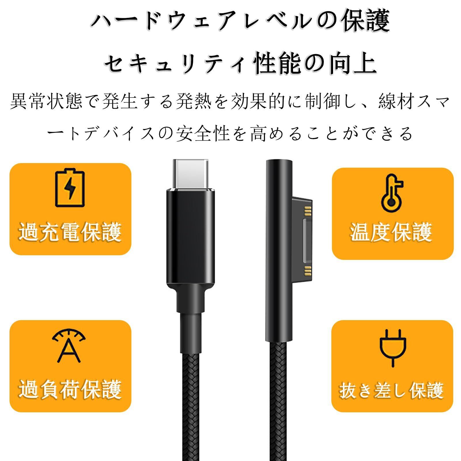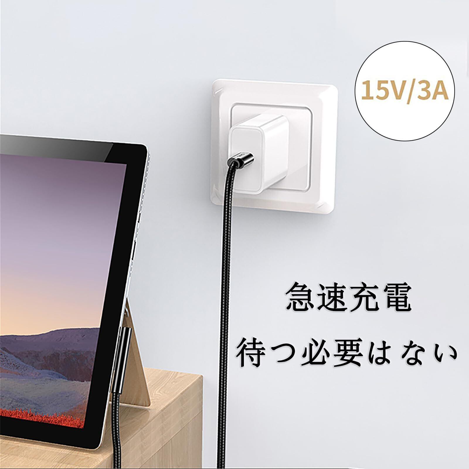 Surface 充電ケーブル PD 急速充電 15V/3A USB-C充電ケーブル ナイロン編み マイクロソフト Surface Pro 7/6/5/4/3/surface Go1/2/surface Laptop 1/2/3/4 など対応 1.8M