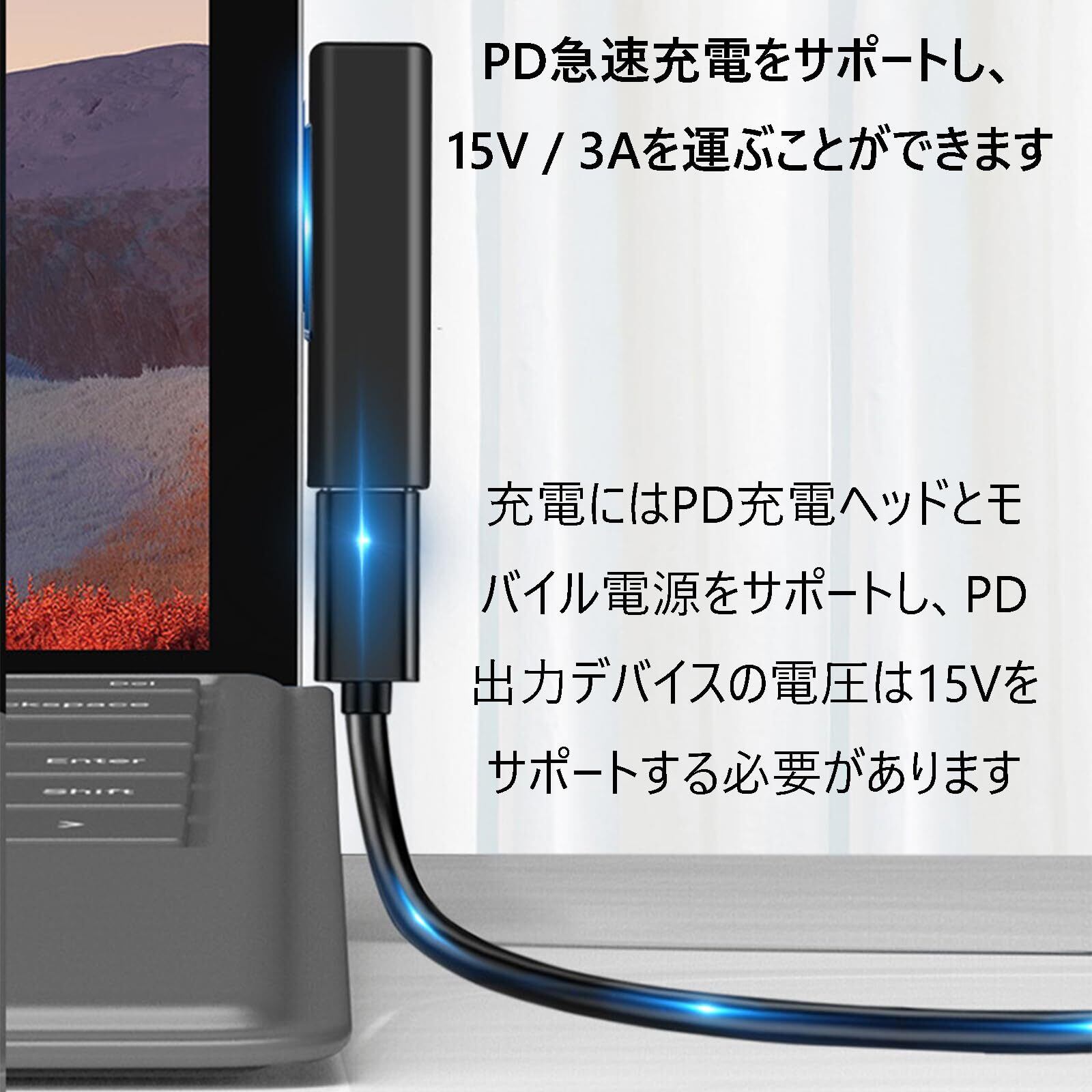 USB Type C to Surface Pro 急速充電 アダプター 15V / 3A 65W PD Type C 充電器 + 両端 Type C ケーブルが必要 マイクロソフト サーフェス 充電用 Microsoft Surface Pro/Surface Go/Surface Laptop/Surface Book など対応(65W15V以上のPD充電器が必要)