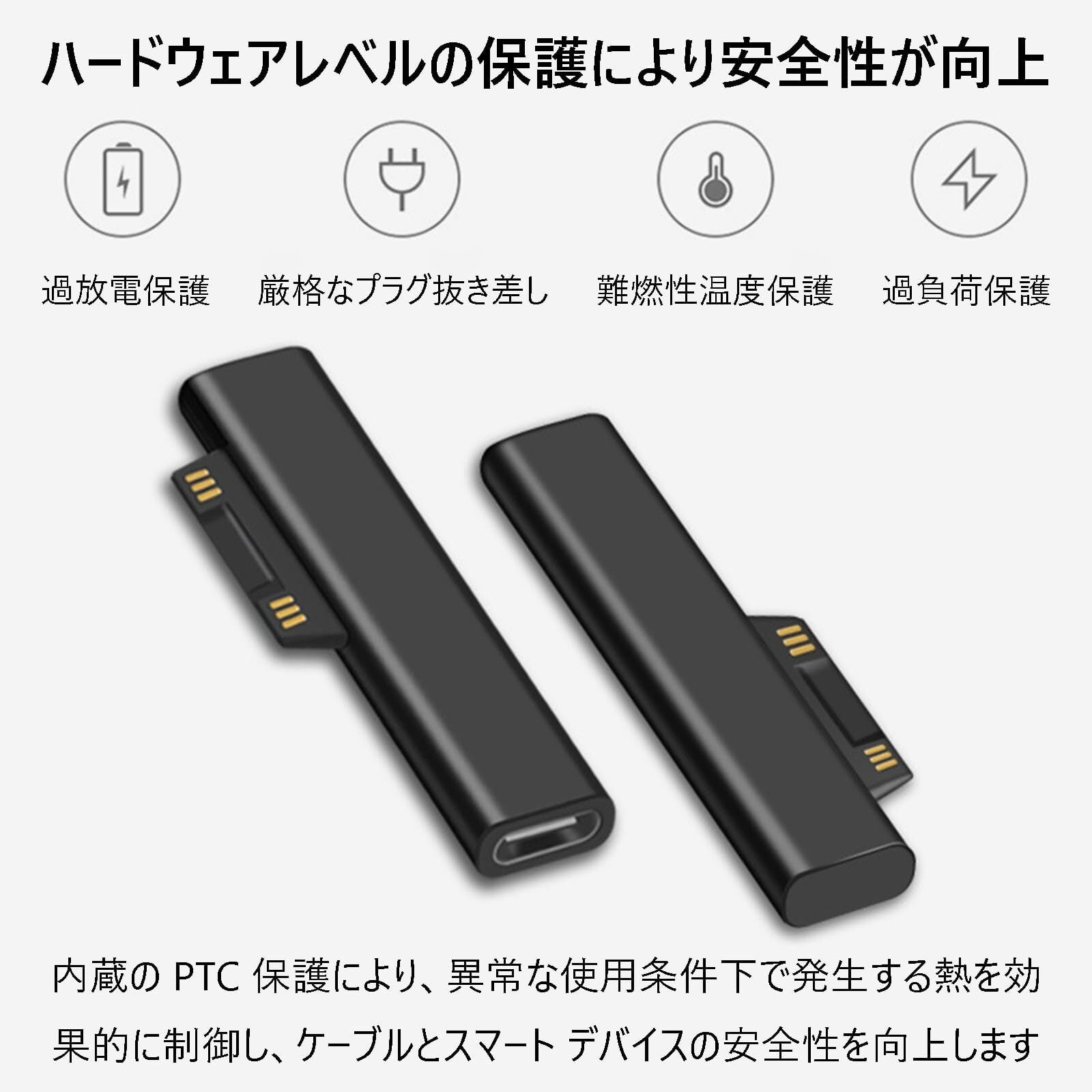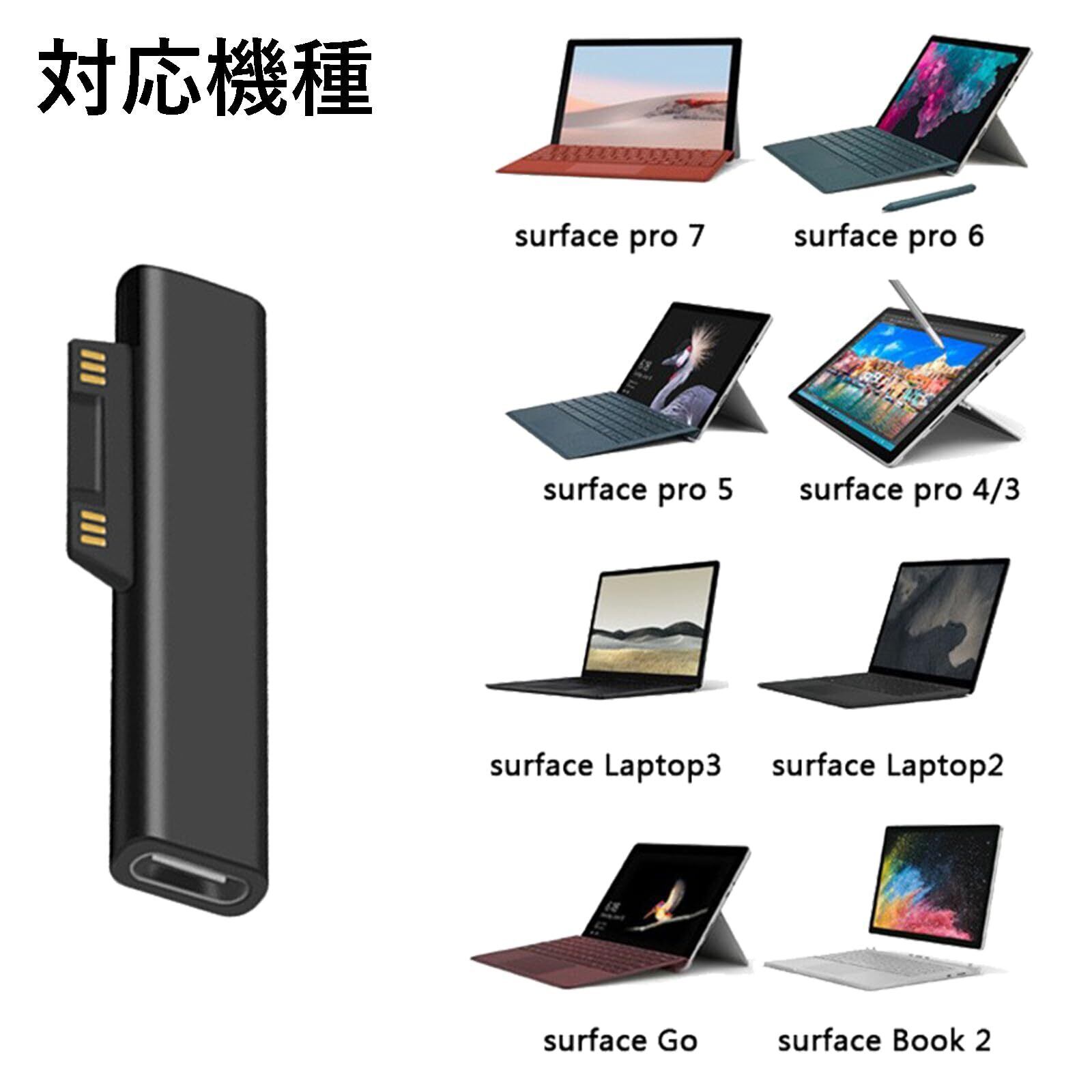 Microsoft Surface Pro、Surface Go、Surface Laptop、Surface Book などのデバイスと互換性があり、USB-C 充電をサポートするどの Surface 製品を使用していても、複数の充電器を異なるデバイスに装備する必要なく、このアダプターを使用して充電できます。