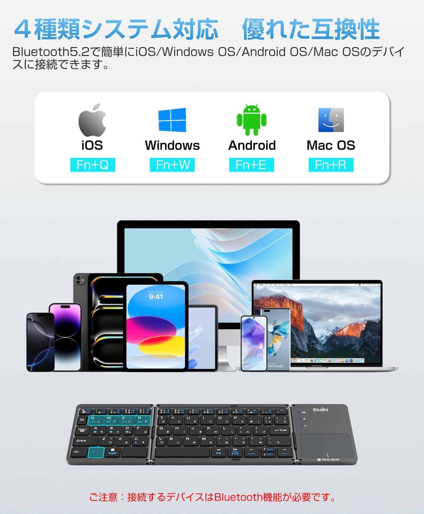 Ewin キーボード bluetooth 折りたたみ ワイヤレス タッチパッド付き keyboard 無線 日本語配列 ブルートゥース ios Android mac Windows対応 3台までのデバイスと接続可能 ipad iphone用 コンパクト 薄型 軽量 タブレット スマホ パソコン用 Type-C充電 スタンド付 グレー