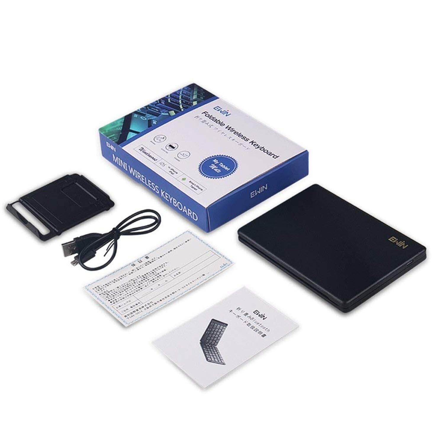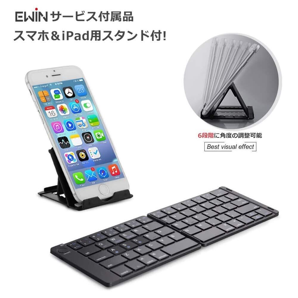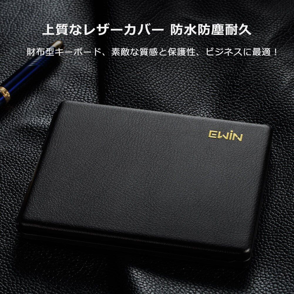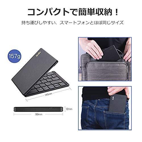Ewin Bluetoothキーボード 折りたたみ式 157g 軽量 薄型 無線 レザーカバー ワイヤレス IOS/Android/Windows に対応 折りたたみ式 ワイヤレス キーボード パソコン用 スタンド付 タブレット/スマートフォンに対応(Black)