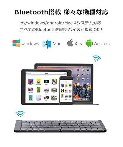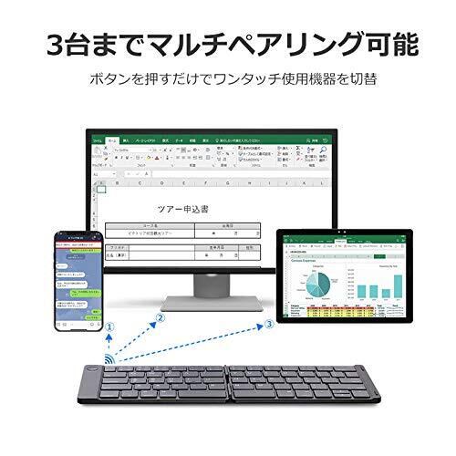 【折りたたみ式コンパクトデザインでスマホからSurface Proまで幅広い機種対応】二つ折りたたみ式の薄型ミニワイヤレス(無線)キーボードで、コンパクトに折り畳んでポケットに収納可能。Surface Pro 3/4/5/6にも対応。革新的な発想を採用し、持ち運びが便利な折りたたみ式デザインに仕上げました。