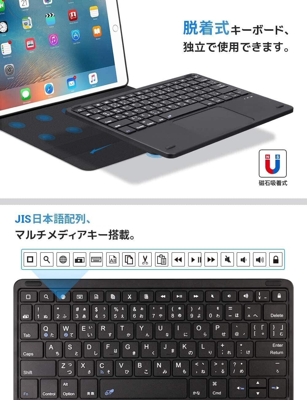 EWiN® 最新型 iPad第9世代 iPad10.2/10.5インチキーボードケース JIS基準日本語配列 第8世代2020 bluetoothキーボード タッチパッド搭載 脱着式 2台のiOSデバイス切り替え可能 ipad air3 ipad pro ブラック