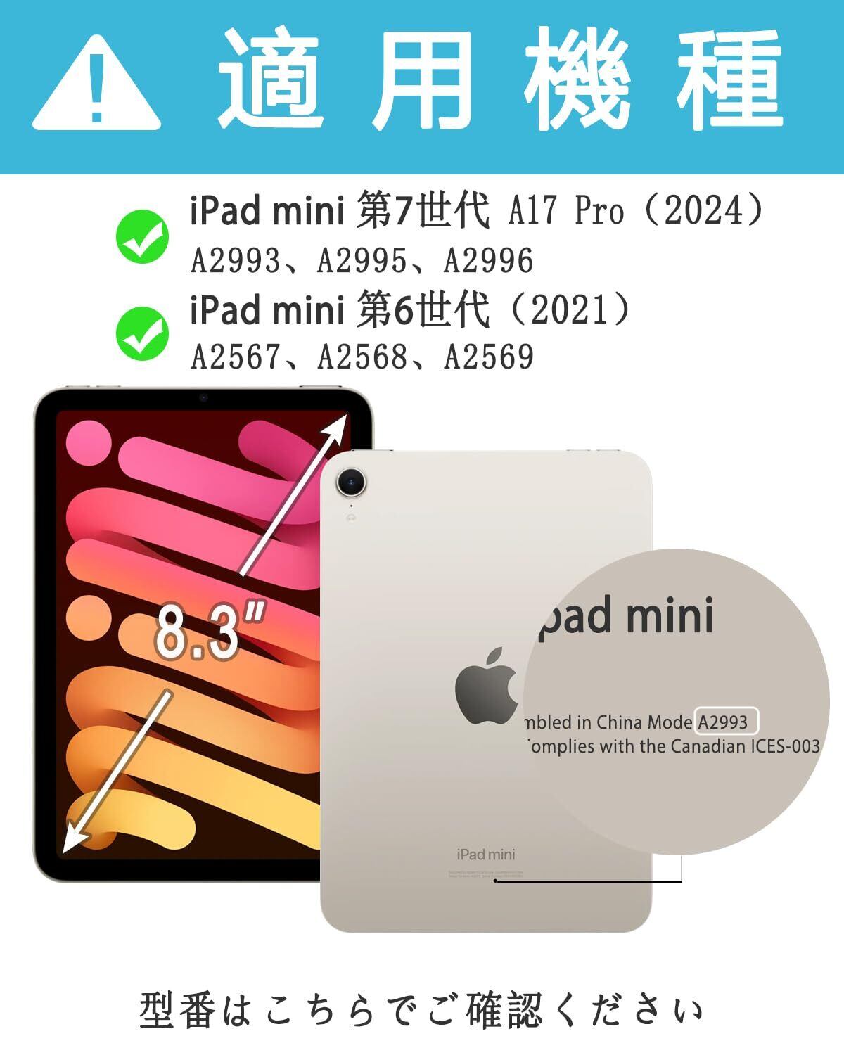 【対応機種】このキーボードケースはiPad mini 7 2024 (A2993/A2995/A2996) / iPad mini 6 2021 (A2567/A2568/A2569) 専用に設計されています。他の iPad タブレット デバイスには適していません。ご購入前にiPadの背面にある「AXXXX」のモデル番号をご確認ください。 (この製品にはタブレット、鉛筆は含まれていません!)