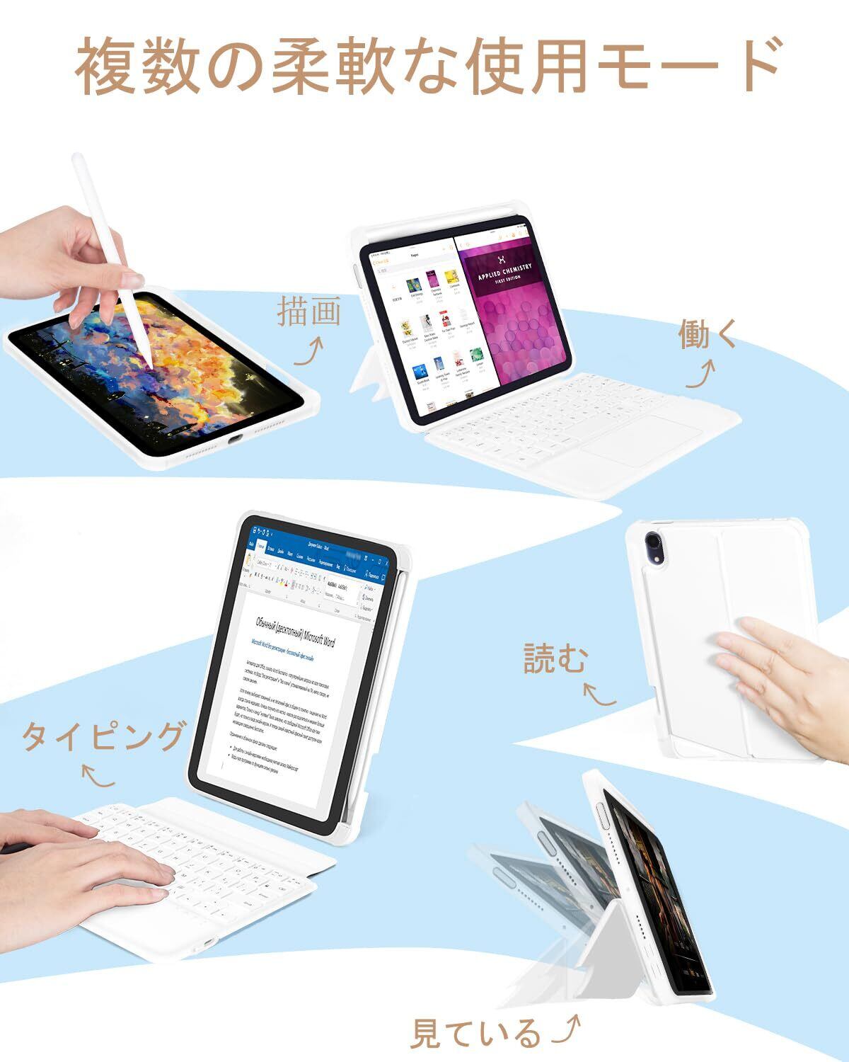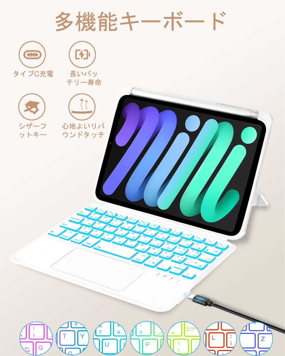 EAMPANG 日本語配列iPad mini 7 (A17 Pro) 2024/6 8.3インチ 2021キーボード付きケース, 7色バックライト磁気取り外し可能USB-C充電 タッチパッド付きマジックキーボード140°調整可能なスタンドペンホルダーカバーiPad mini 第7世代 アップルアイパッドミニ第6世代 2021 軽量(白)