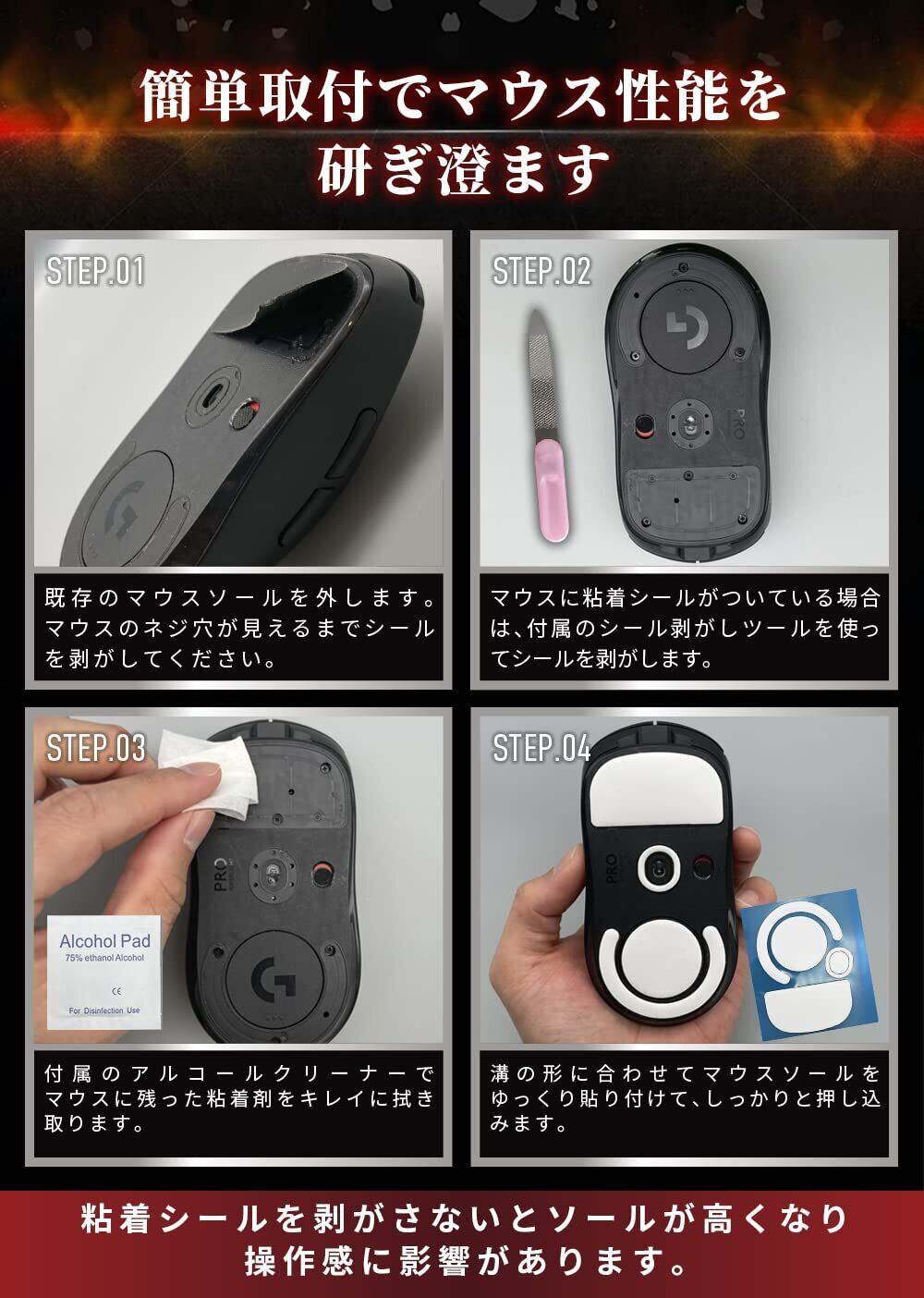 【内容品】PTFE素材マウスソール×2個、クリーナー、ソール剥がし用ツール