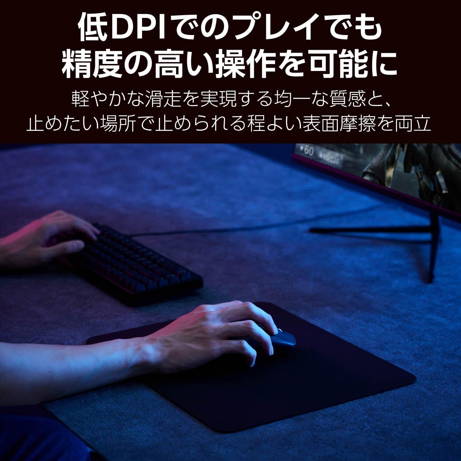 ■軽やかな滑走を実現する均一な質感と、止めたい場所で止められる程よい表面摩擦を両立。低DPI設定でのプレイでも精度の高い操作を可能にします。