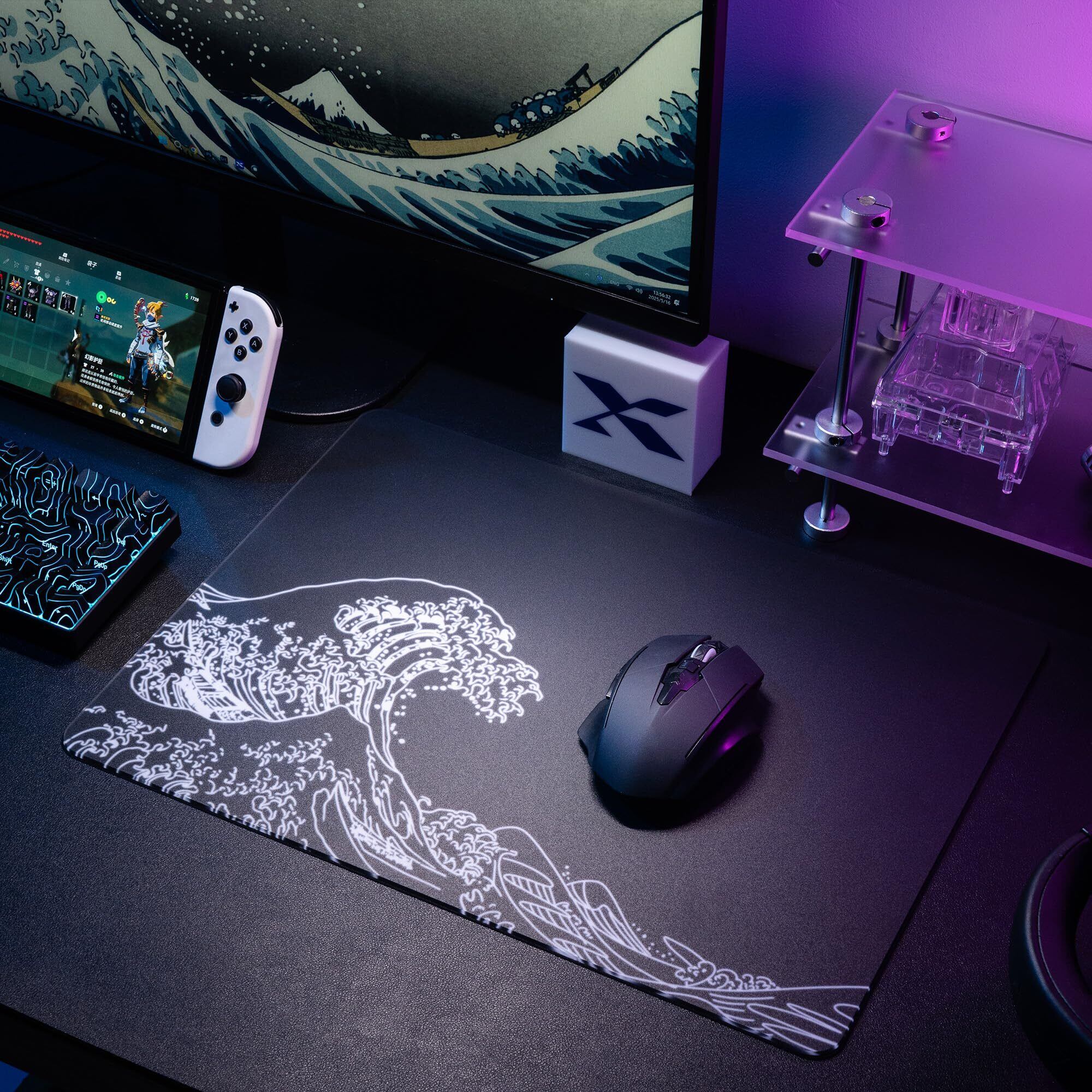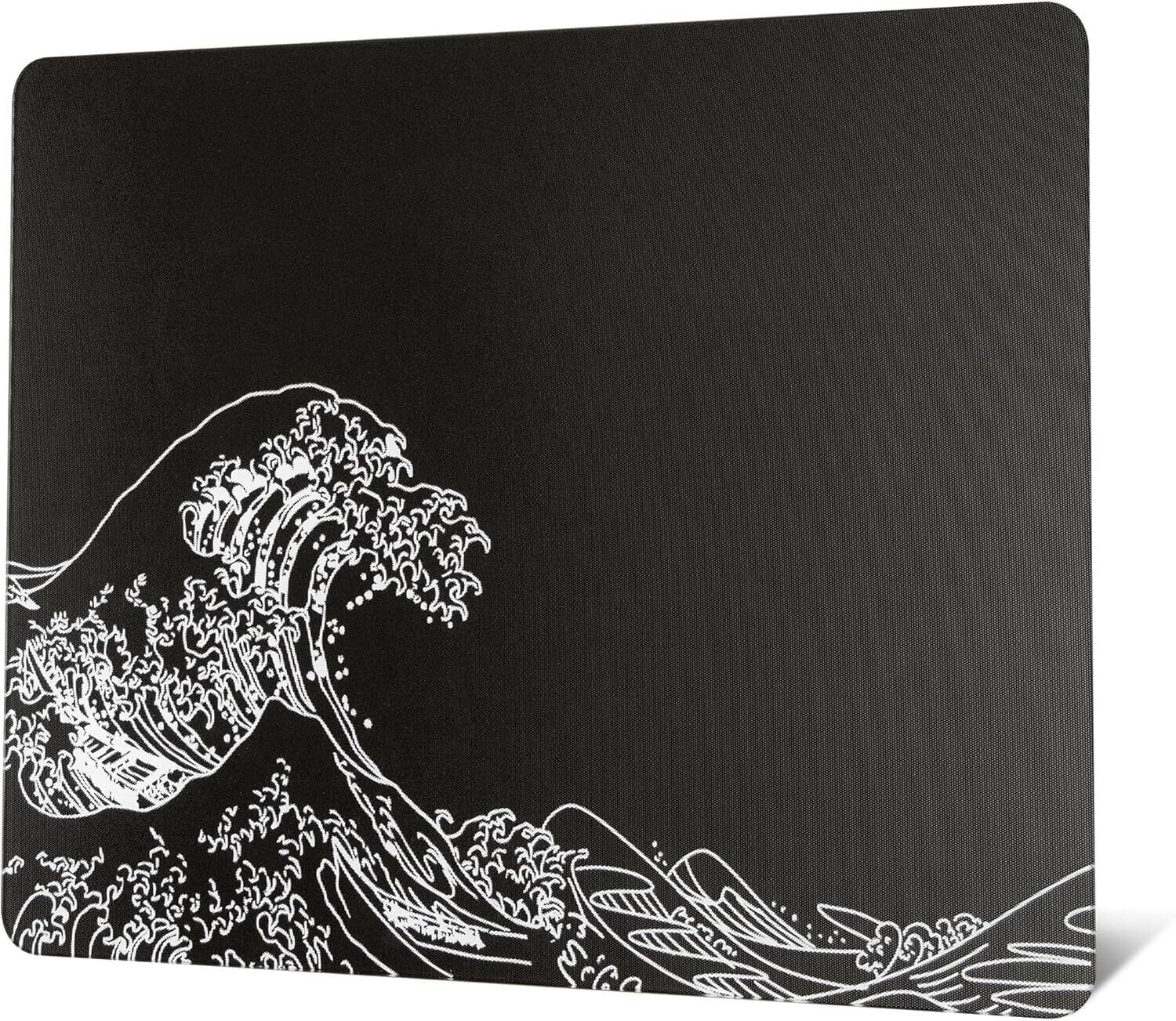 ガラスゲーミングマウスパッド -XVX 黒神奈川柄ハードマウスパッド プロ向け大型マウスマット 410mm×310mm 特殊ガラス表面で精度とスピード向上