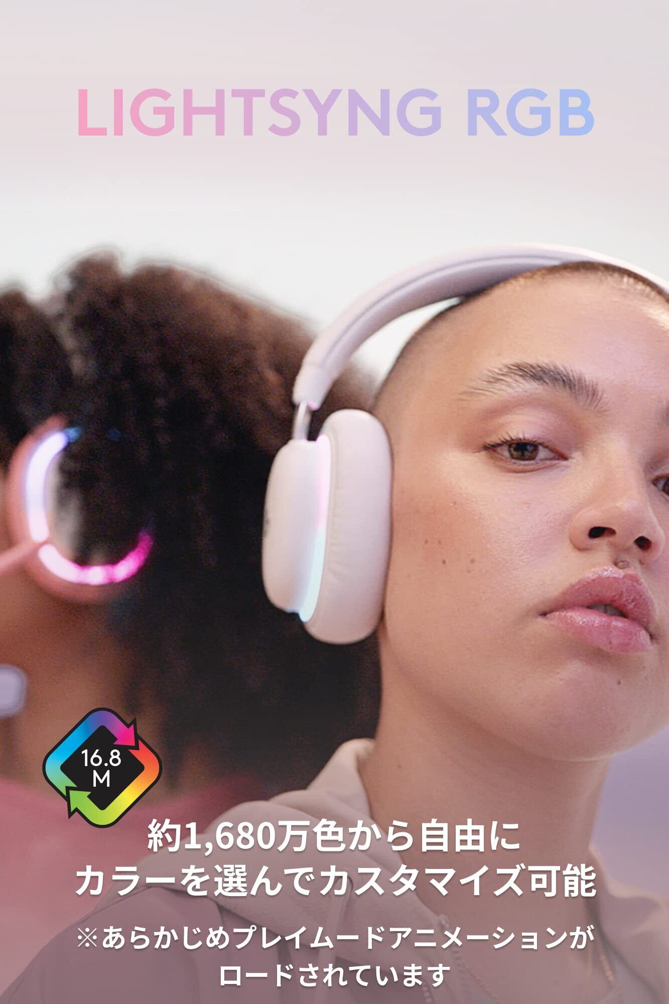Logicool GのAuroraコレクションのG735 ワイヤレスゲーミングヘッドセット で、あなたの方法でプレイしましょう。Logicoolのゲーミングヘッドセット は、頭の小さい方を含むすべてのプレイヤーが快適に利用できるよう設計されています。この コンピューターヘッドセットは、調節可能なヘッドバンド、通気性のある素材、クッション性のある回転可能なイヤーカップを備えています。この ヘッドセット は、メガネと小さなイヤリングを念頭に置いて設計されているため、耳が挟まるようなことは今後ありません。この長時間利用可能なゲーム用ワイヤレスヘッドセットは、最大16時間以上のワイヤレスプレイタイム(照明が付いていて音量設定が50%の場合。照明を切って音量設定が50%の場合は56時間)とマルチプラットフォーム接続で、ゲームを楽しむことができます。Logicool G LIGHTSPEED ワイヤレスまたはBluetoothを使用して、PC、Mac、またはモバイルデバイスに接続して、PCゲームやプラットフォーム間でのゲームを行います。Windows、macOS、Chrome OSなど、ほぼすべてのプラットフォームやオペレーティングシステムでゲームを楽しめます。没入型の音質、パッシブノイズキャンセリング、クロスデバイスのオーディオミキシングを 備えたこのゲーミングヘッドセットで現実を離れてゲームの世界に入り込みましょう。G735の マイク付きゲーミングヘッドセット には、一方向性の取り外し可能なマイクブームがあり、たとえ大きく叫ばなくても、あなたの声が大きく明確に聞こえるようになります。ワイヤレス接続と有線接続を簡単に切り替えたり、耳のコントロールでマイクをミュートしたりできます。この PCヘッドセット の40 mmドライバー、ドルビーアトモスとWindows Sonic Spatial Soundの互換性により、現実から離れてゲームの世界へと没入できます。LIGHTSYNCは、ゲームの状態を反映した4つのレスポンシブなプレイムードがあり、ゲームがよりカラフルになります。RGBゲーミングヘッドセットは、無料のGHubソフトウェアを使用して16.8MのプログラマブルRGBライティングカラーで独自のカスタムアニメーションエフェクトを作成することができます。カスタマイズを楽しんで、アニメーションを披露してください。さまざまな色から選べるイヤーカップとマイクブームでG735を作り、オプションのマッチングキャリーケース(別売)でどこにでも持ち運びできます。