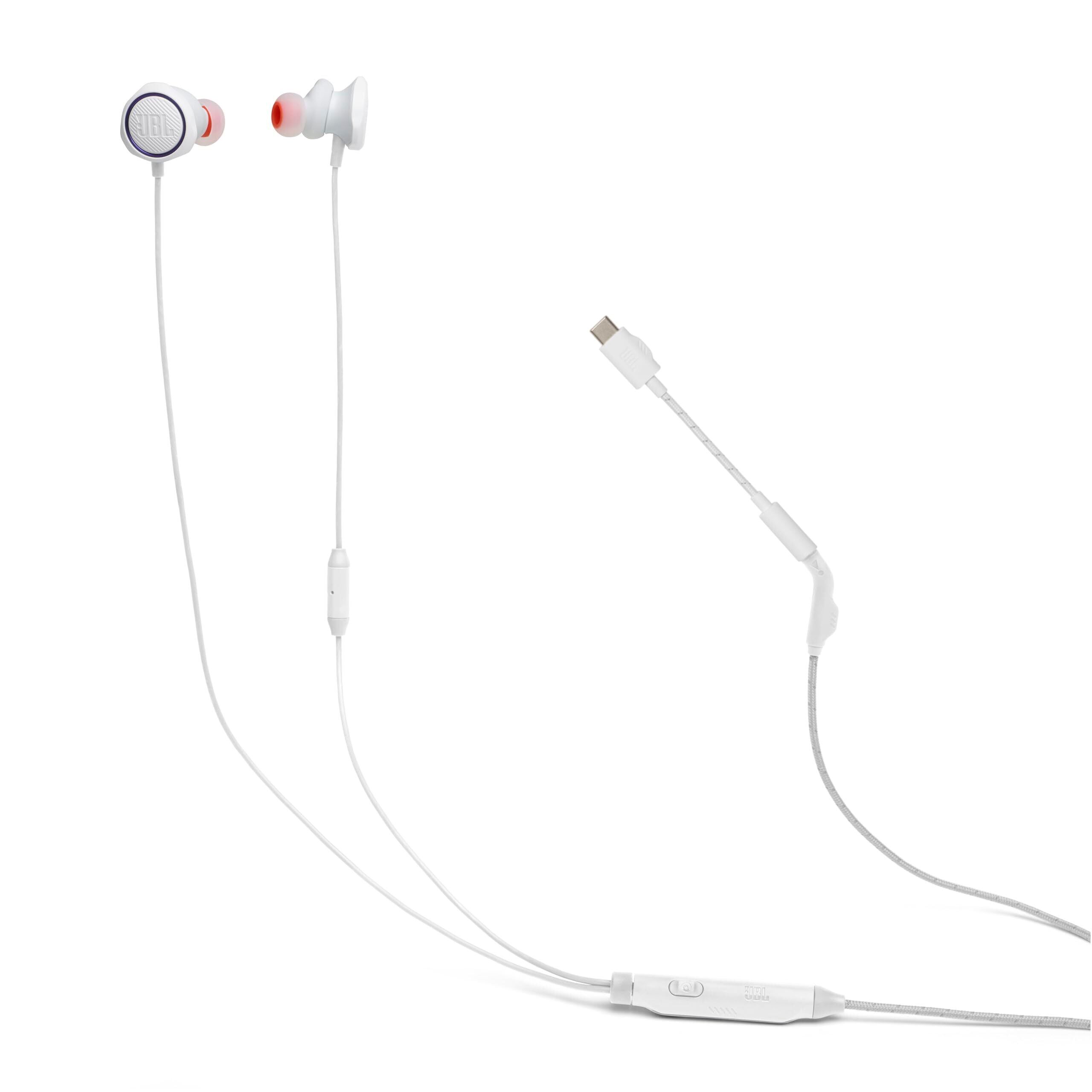 【 限定】JBL QUANTUM 50C ゲーミングイヤホン/ヘッドセット/3.5MMプラグ USB Type-C 接続 脱着式アダプター/ボイスフォーカスインラインマイク/ホワイト/JBLQTUM50CWHT
