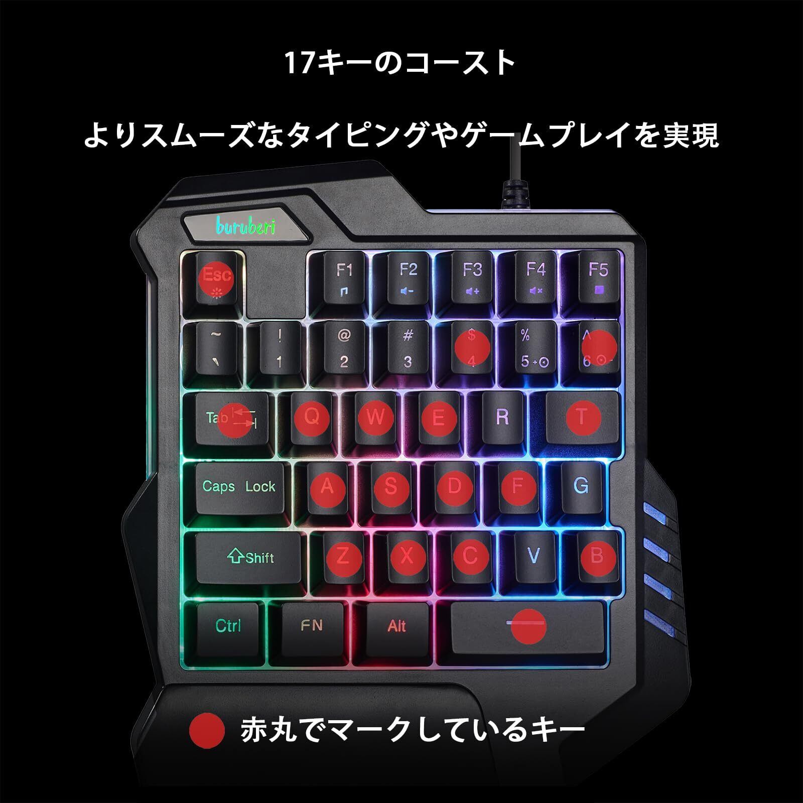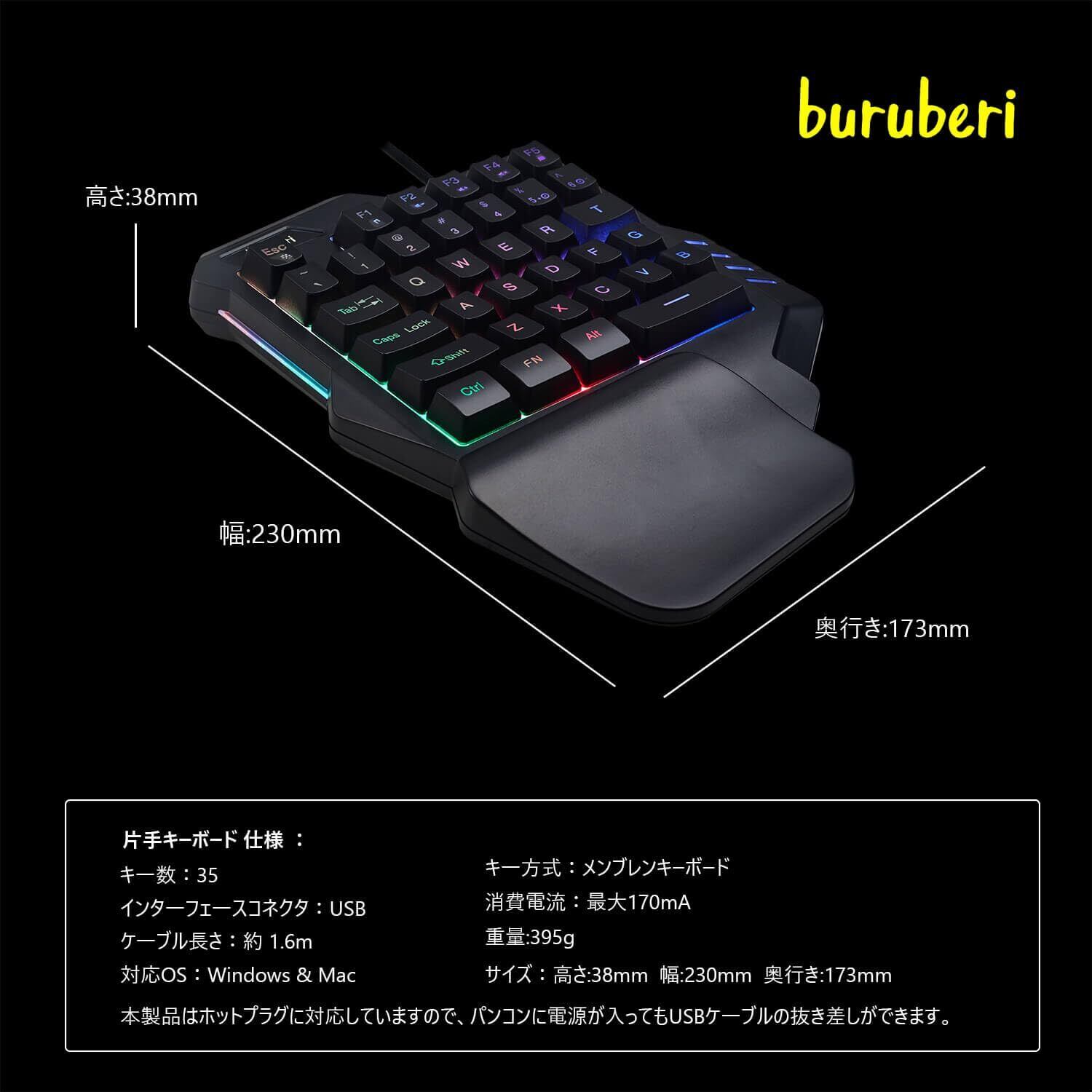 buruberi ゲーミングキーボード 片手キーボード 持ち運び便利有線キーボード Windows&Macを対応 1年間のメーカ期間beri G92