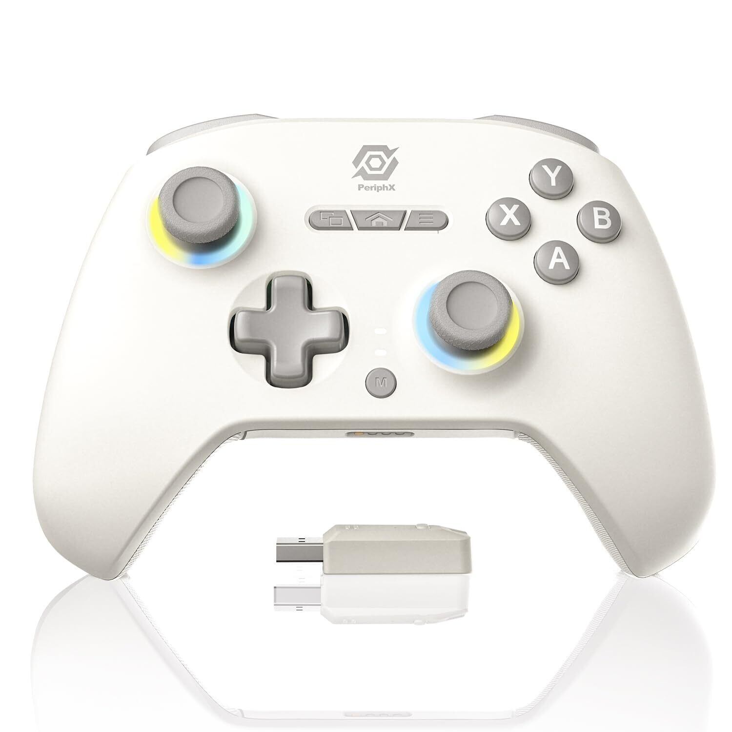 PC コントローラー 有線/Bluetooth/2.4G無線接続可能 2.4Gレシーバー付き 可切替ホール効果&触覚トリガー搭載 1000Hz超高速ポーリングレート 高精度ホール3Dスティック デュアルモーター 6軸ジャイロ 4段階振動 TURBO連射 背面ボタン搭載 マクロ機能 RGBライト付き Windows シリーズ/Switch1/Switch2/Steam Deck/Android/iOS対応 PeriphX ゲームパッド