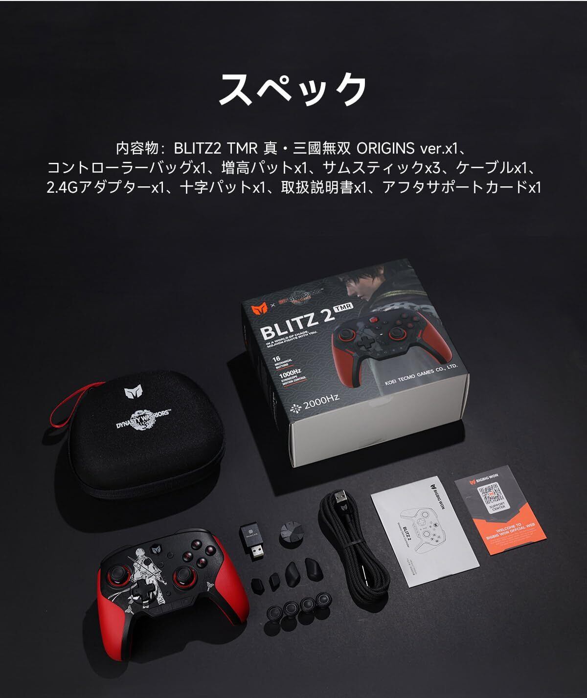 【真・三國無双ORIGINS 限定モデル】BIGBIG WON BLITZ2 TMR ワイヤレスコントローラー TMR磁気抵抗スティック 2000Hzポーリングレート(無線・有線対) 16個のメカニカルスイッチボタン 1000mAh大容量バッテリー アプリ対応 コラボ限定商品