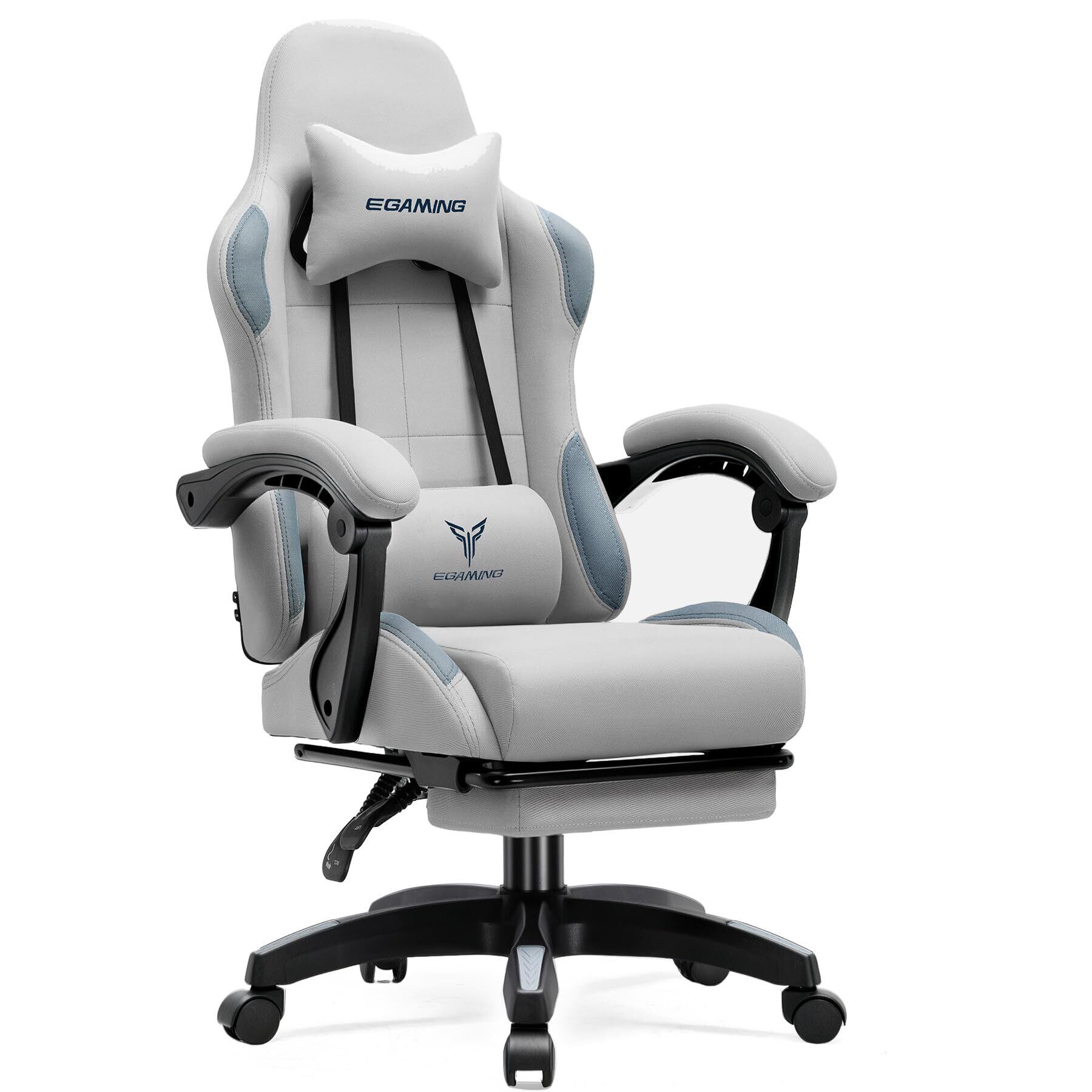 LUCKRACER ゲーミングチェア ファブリック 人間工学 腰痛対策 椅子 イス 90°~135°リクライニング テレワーク pcチェア デスクチェア 蒸れない 夏でも涼しい ソファーの座り心地 キルティング【一体式オットマン付き】ヘッドレスト&ランバーサポート 連動式アームレスト 通気性 GTBEE-GRAY