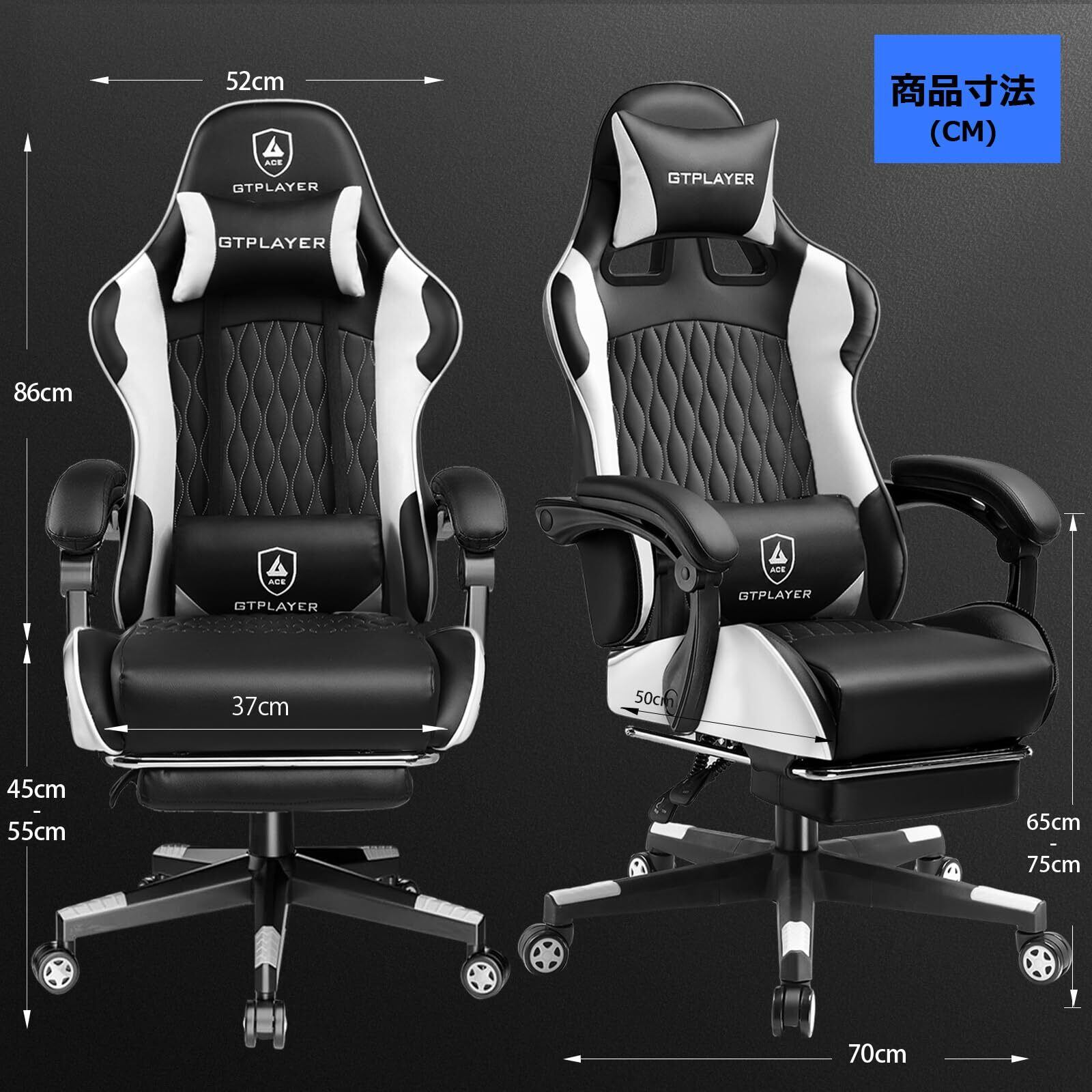 GTRacing ゲーミングチェア オフィスチェア デスク pcチェア 椅子 テレワーク 145°リクライニング オットマン付き ゲームチェア ハイバック ランバーサポート ポケットコイルが内蔵 PUレザー (WHITE)