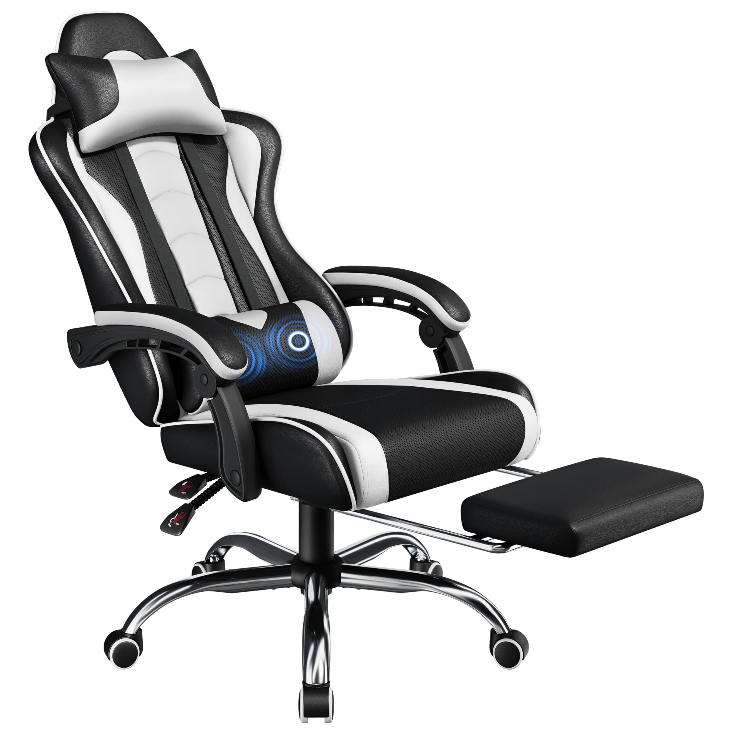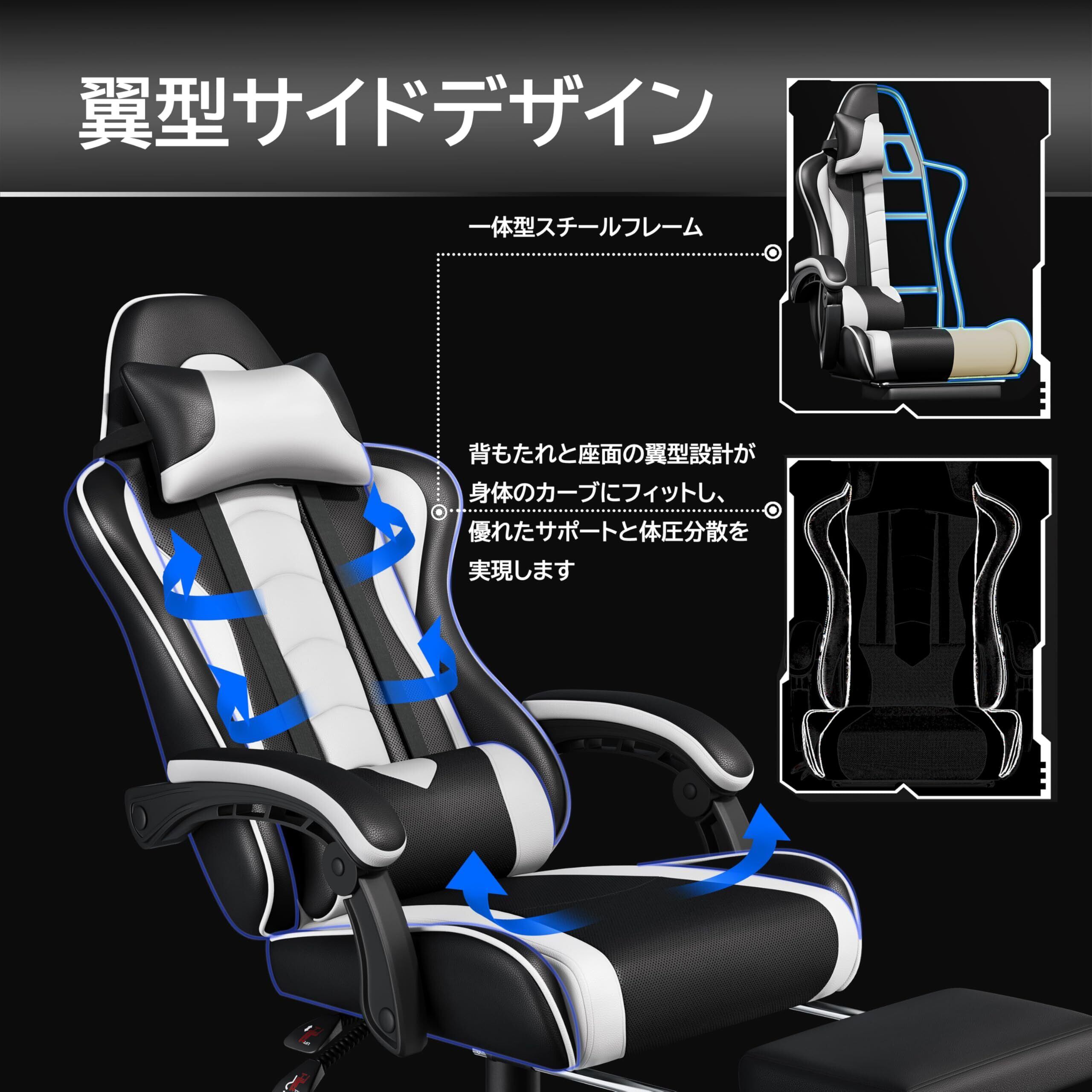Yaheetech ゲーミングチェア 通気性 PUレザー ウイングバックパソコンチェア デスクチェア オットマン付き 連動式アームレスト ヘッドレスト&ランバーサポート 高さ調整可能 人間工学 蒸れない 椅子 ブラック&ホワイト