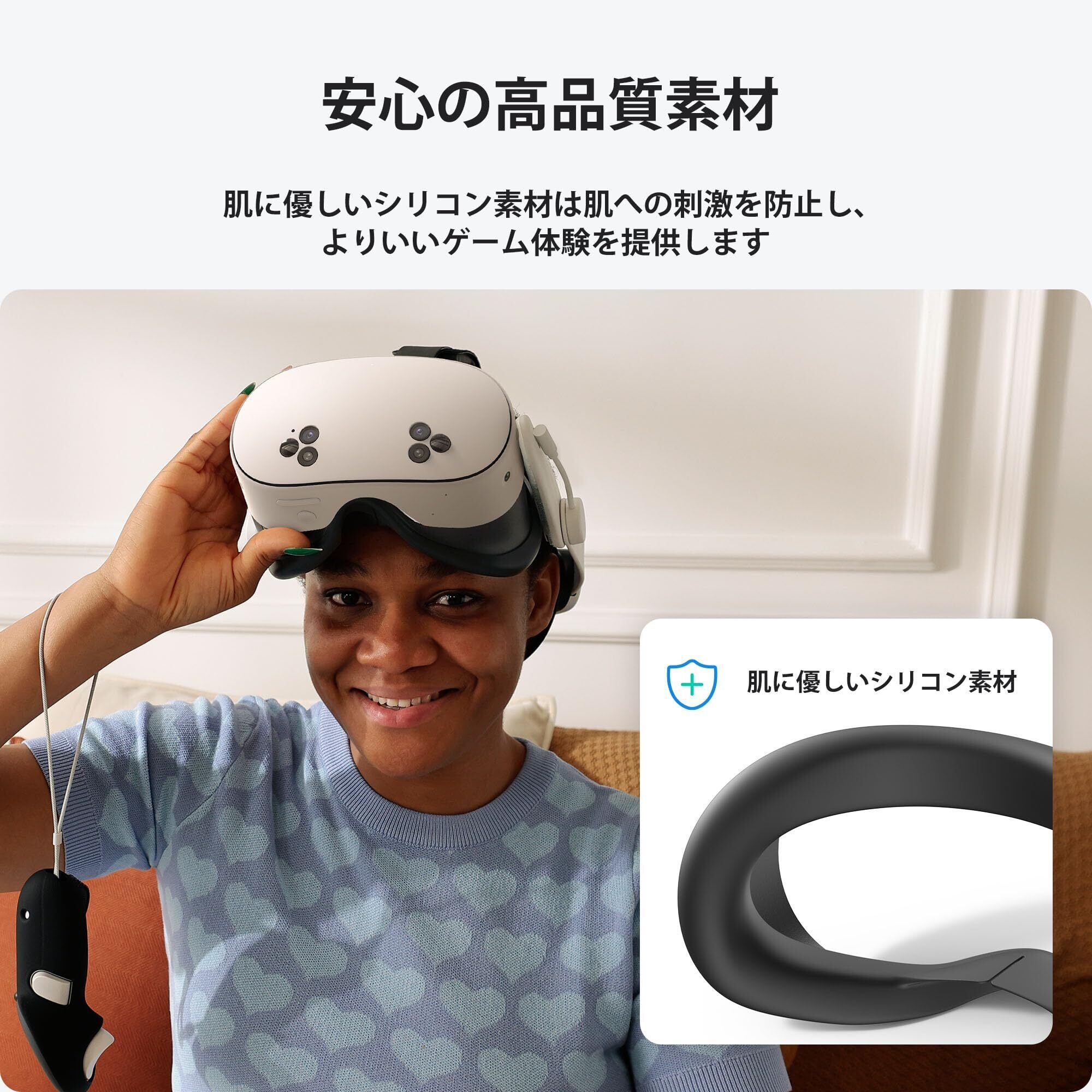 耐汗性素材:耐汗性シリコン製のフェイスパッドは、汗の蓄積を軽減し、長時間のVR体験中も清潔さと快適さを維持できます。