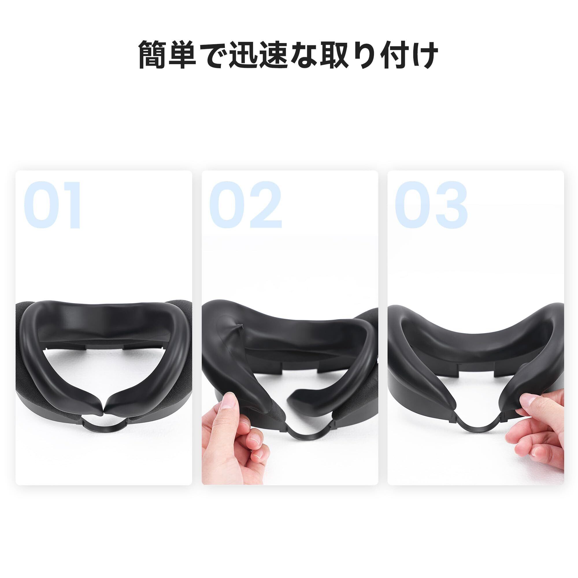 肌に優しいシリコン素材:柔らかいシリコン素材に作れられたquest 3に対応 フェイスカバーは優しい肌触りで疲労を軽減し、長時間の使用でも快適。