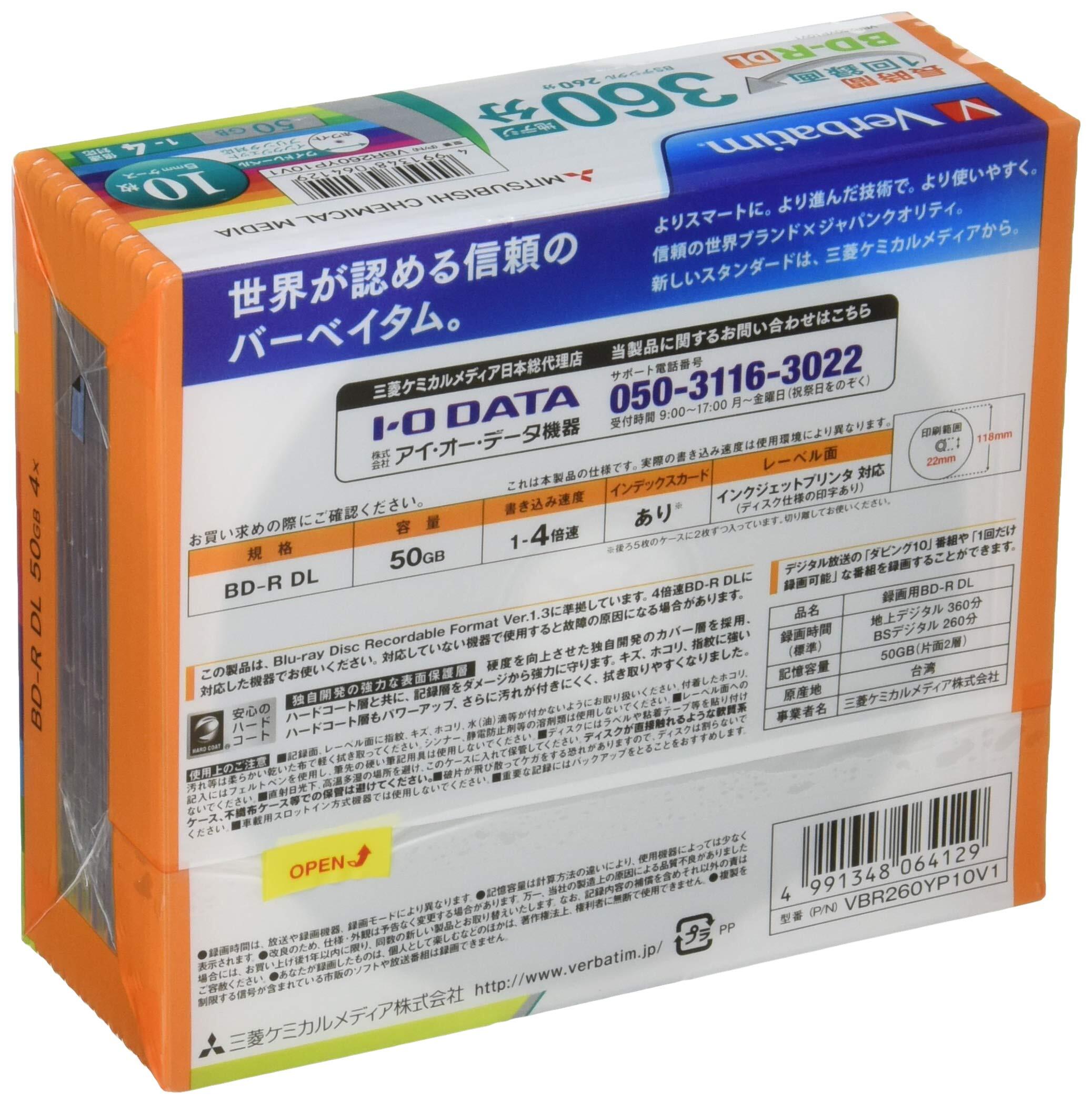 バーベイタム(Verbatim) Verbatim バーベイタム 1回録画用 ブルーレイディスク BD-R DL 50GB 10枚 ホワイトプリンタブル 片面2層 1-4倍速 VBR260YP10V1